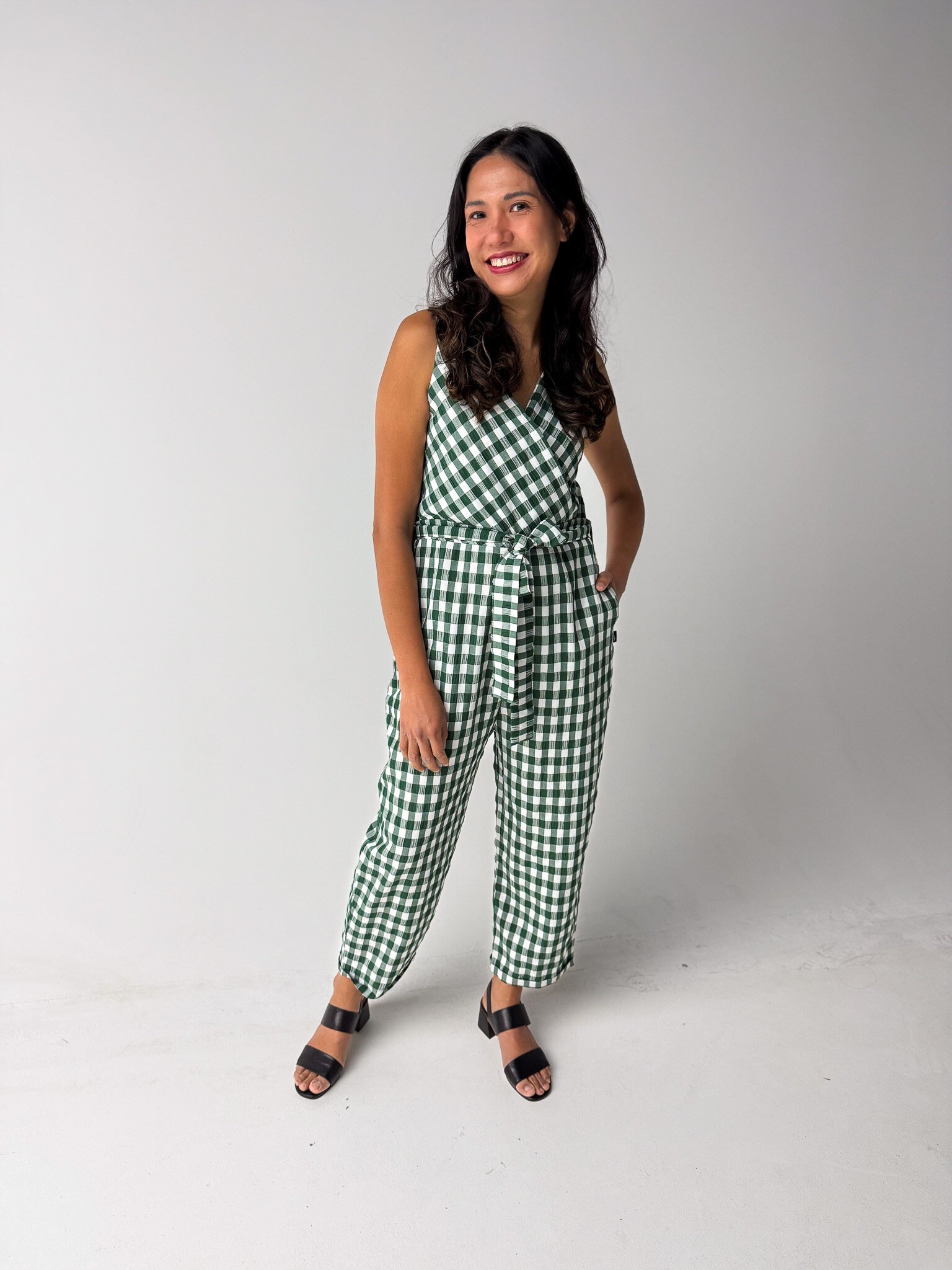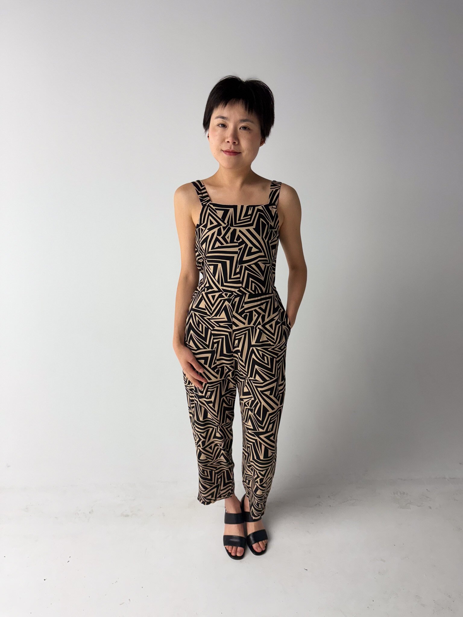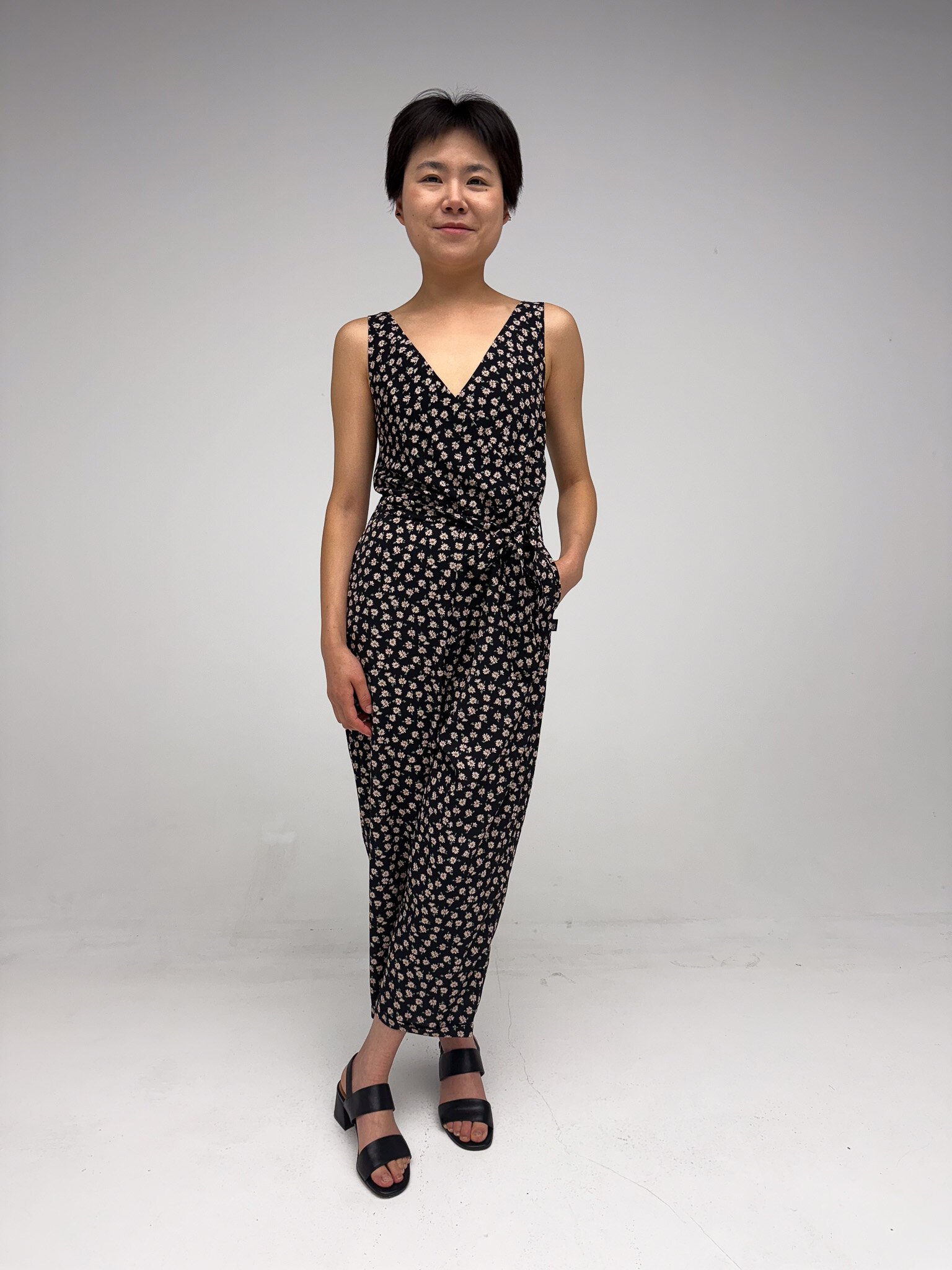 Amber is a reversible jumpsuit with adjustable straps, a waist tie, cuffed pant hems and of course pockets!