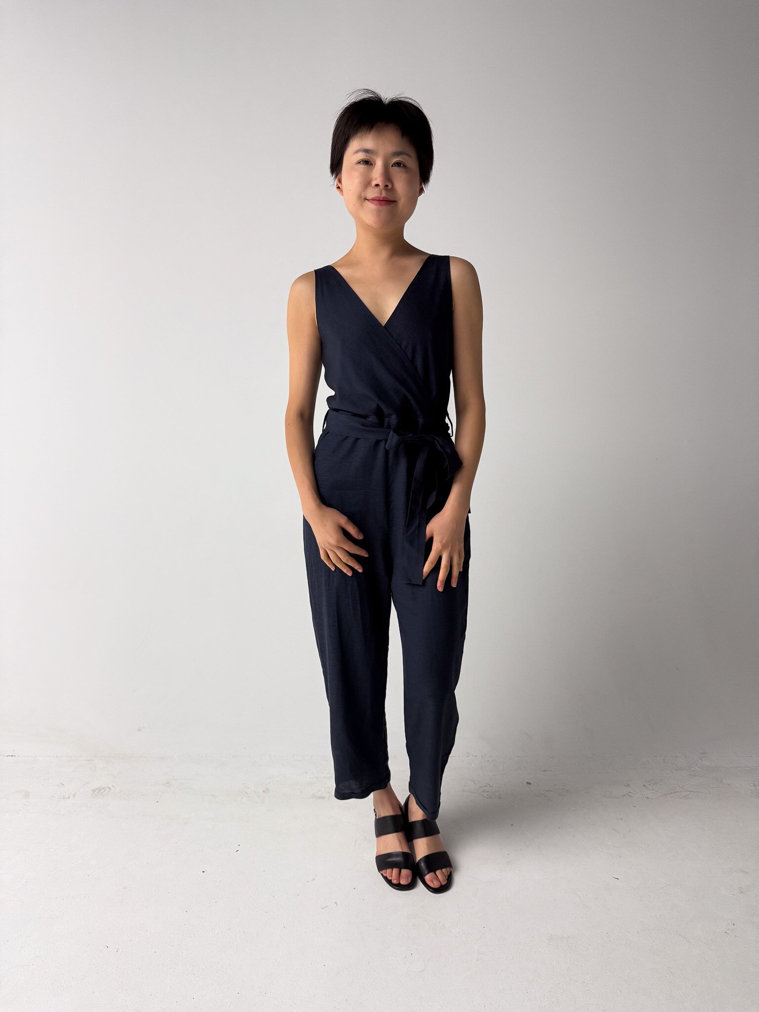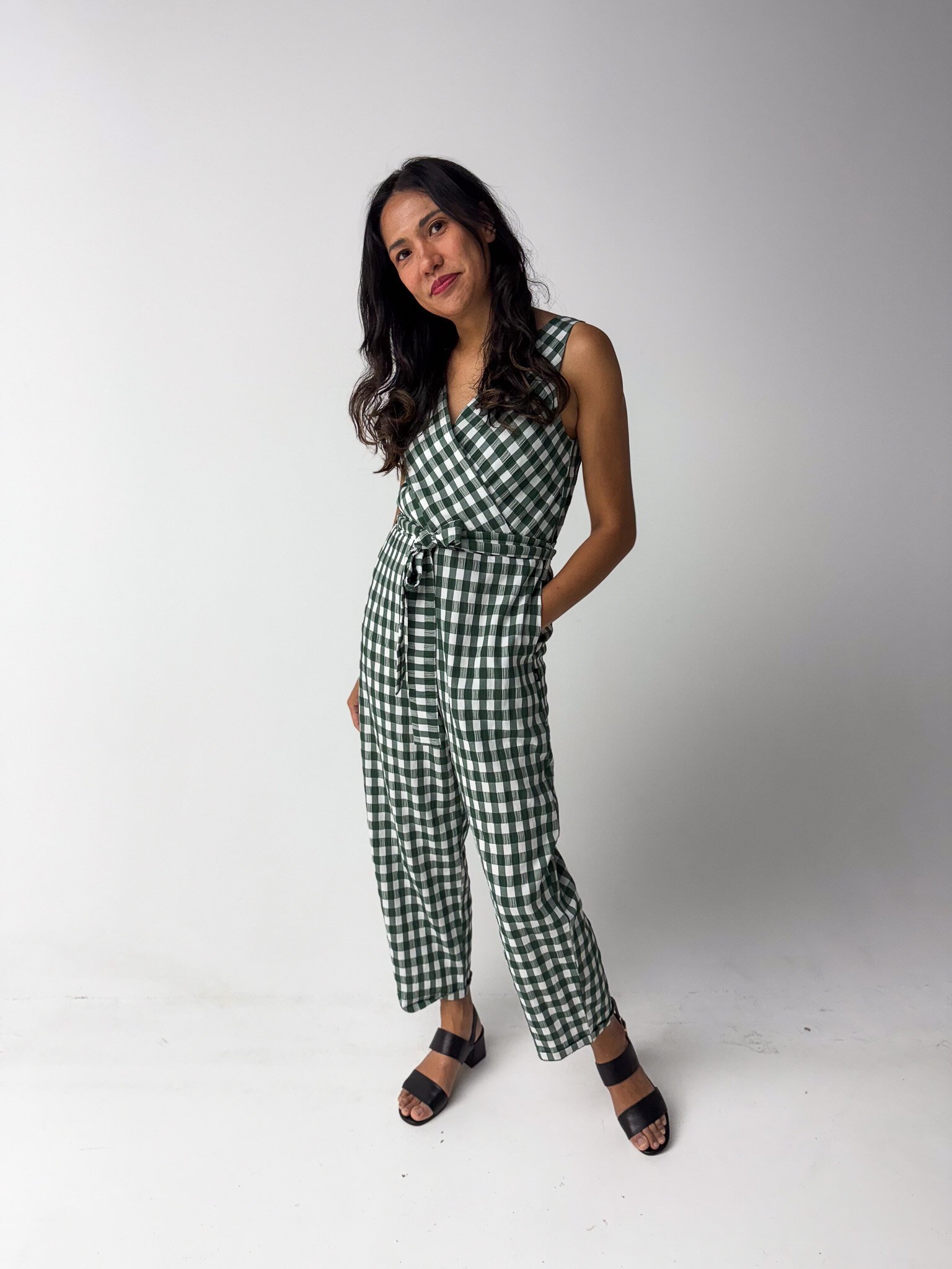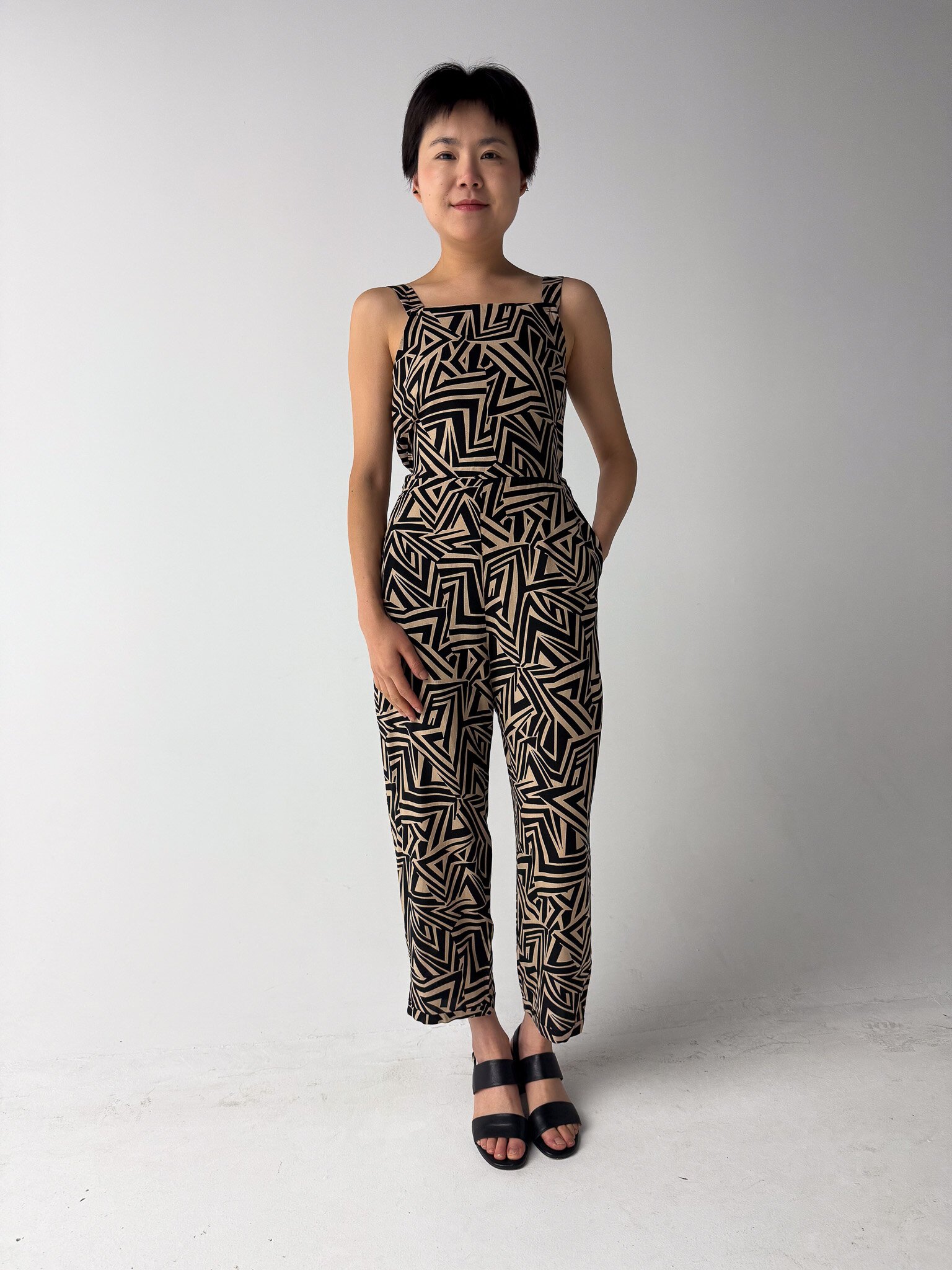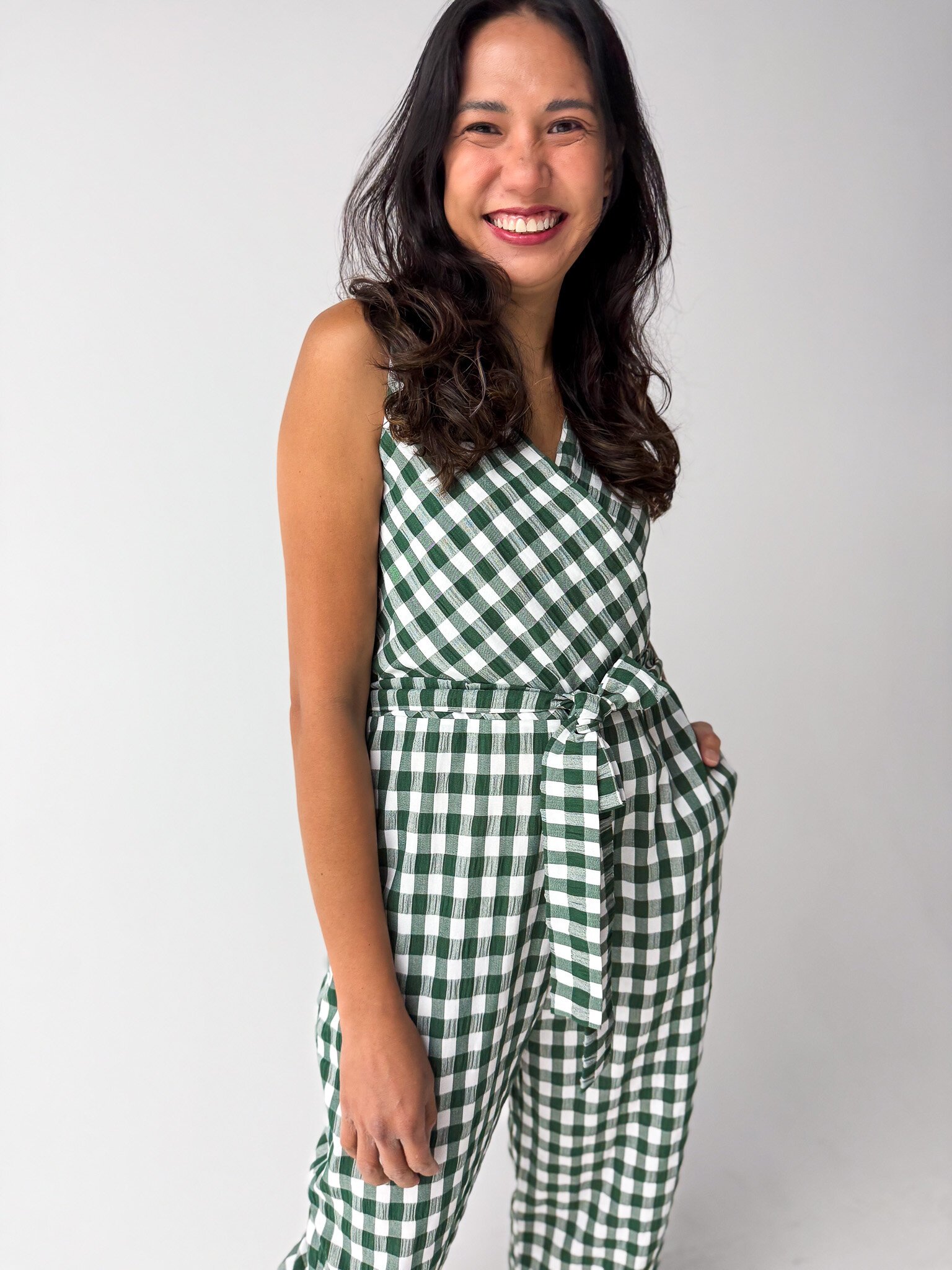Amber is a reversible jumpsuit with adjustable straps, a waist tie, cuffed pant hems and of course pockets!