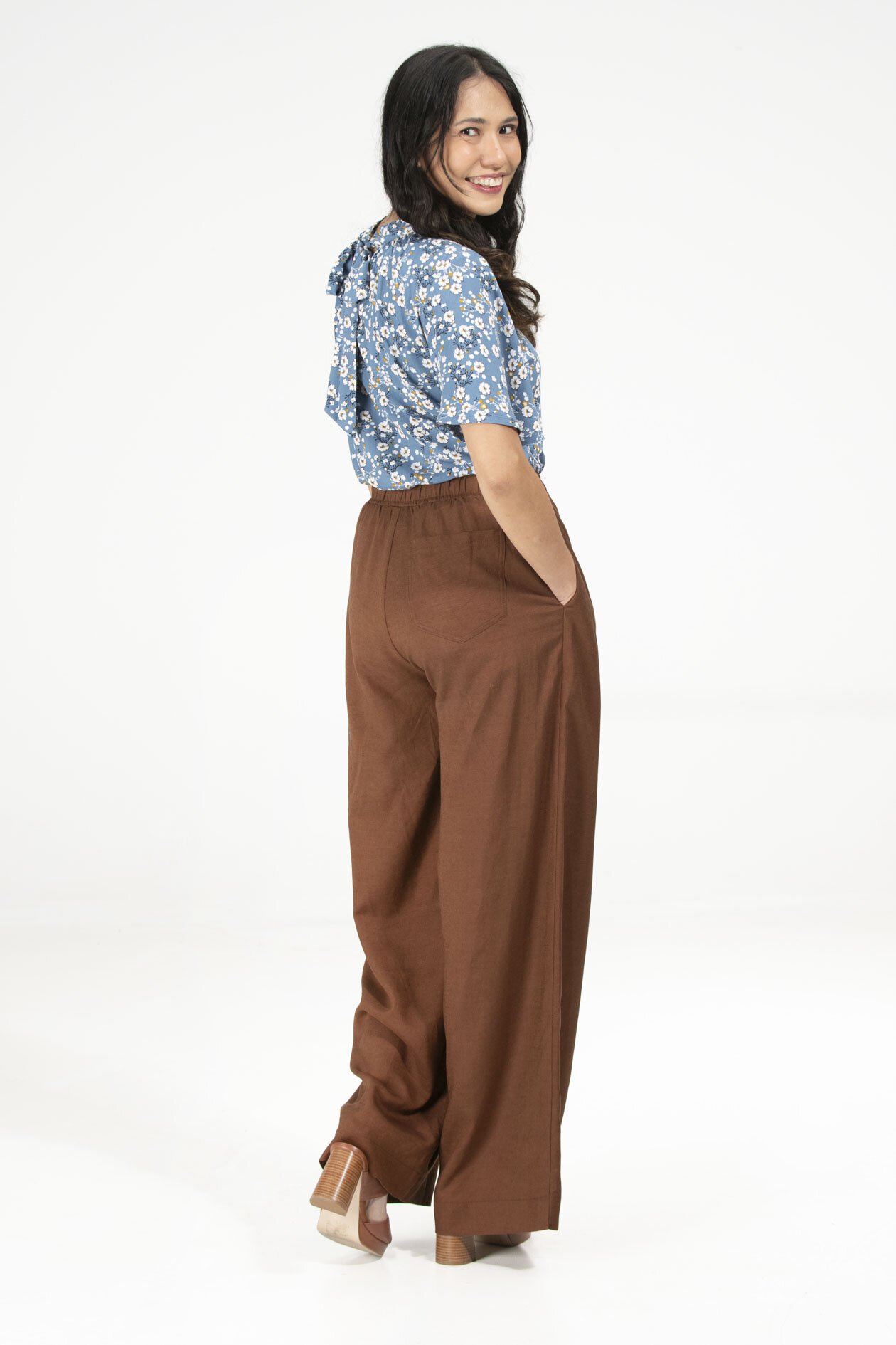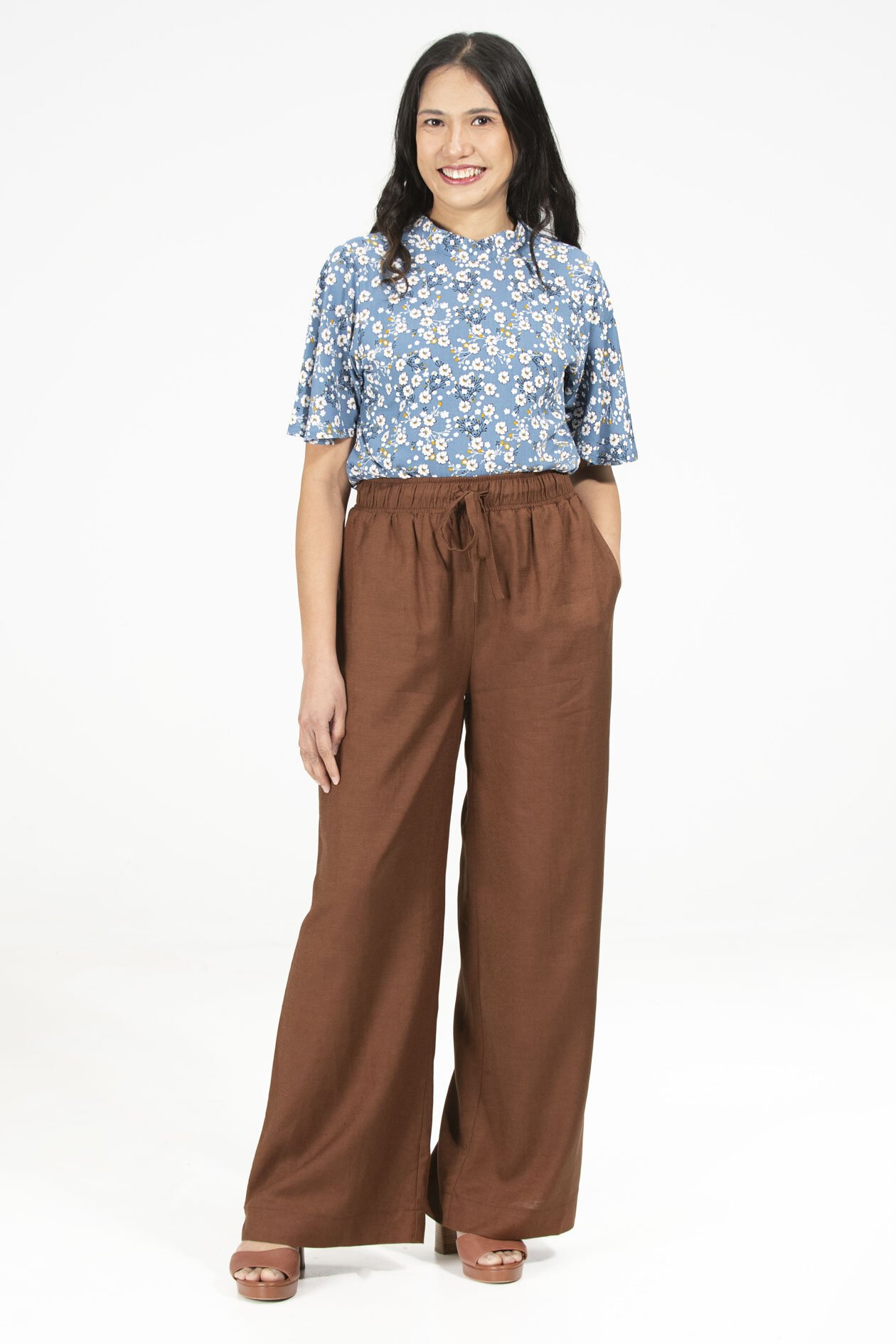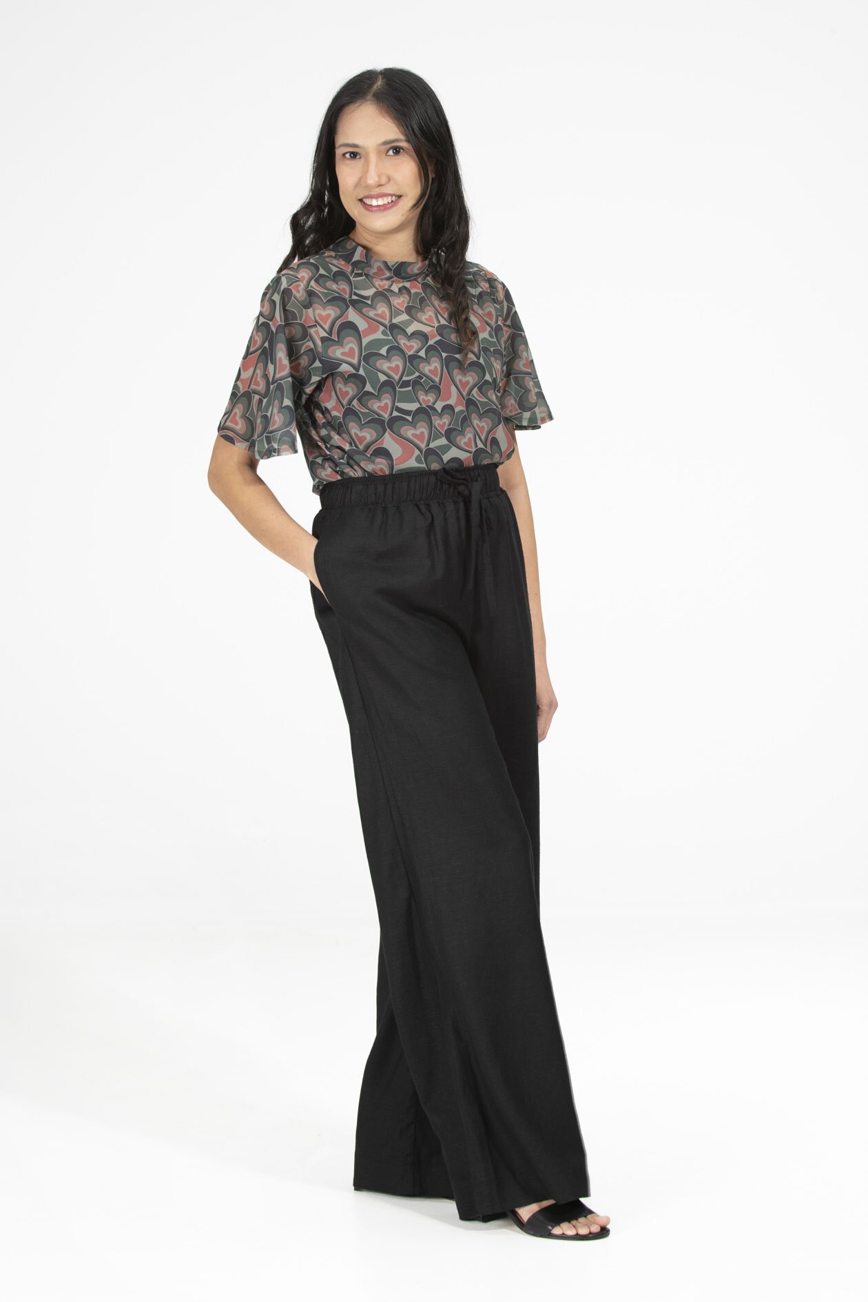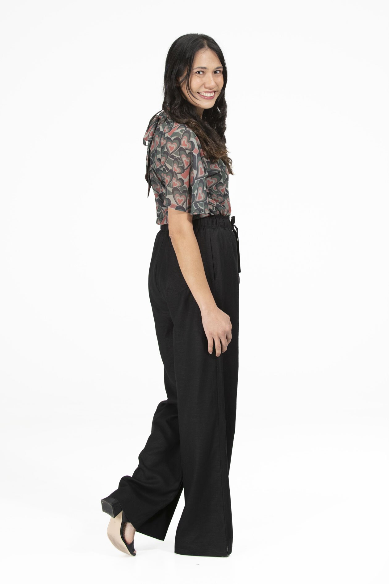 Amelia is a short sleeve reversible top with a neck tie gathered neckline and keyhole.