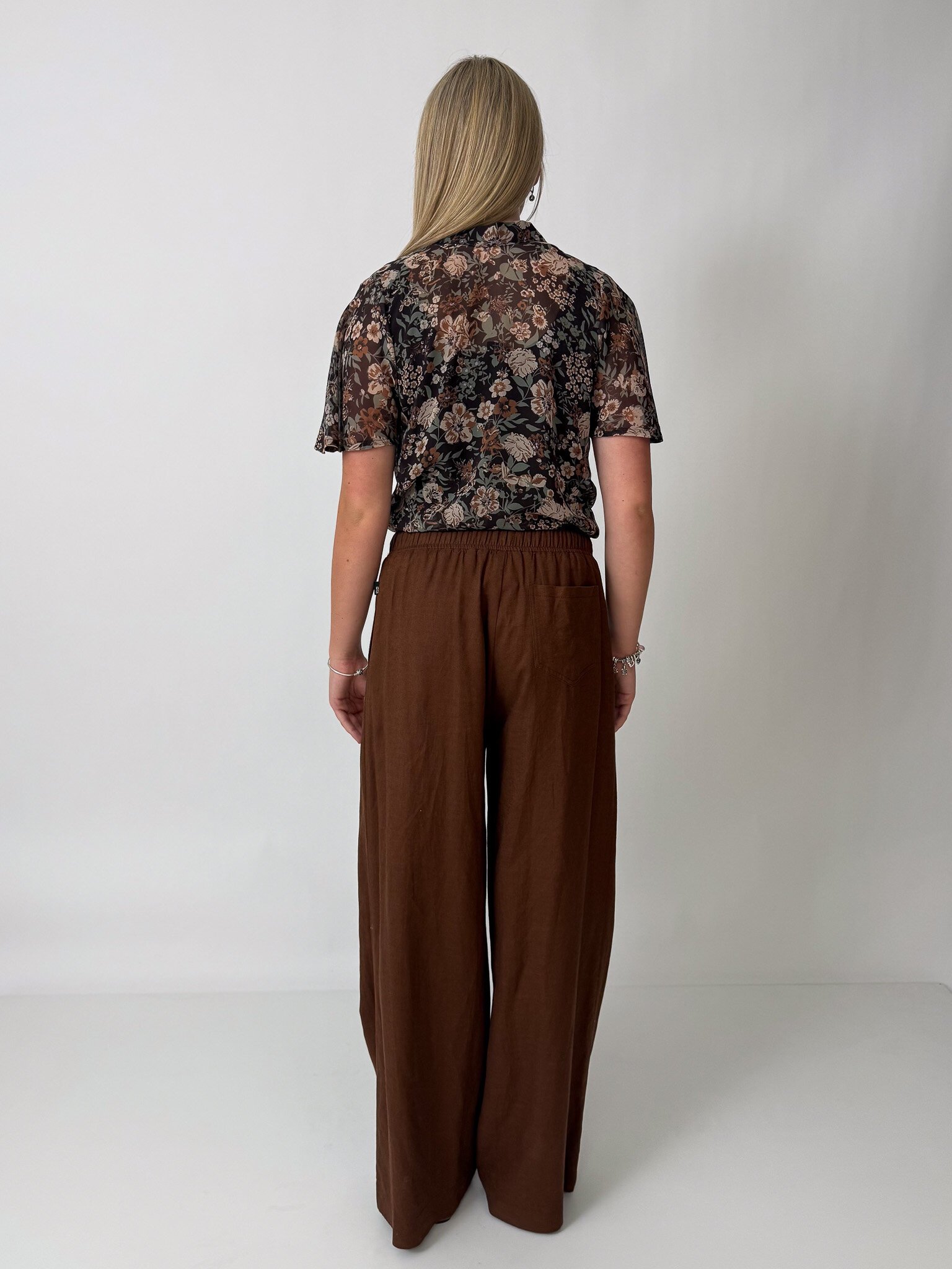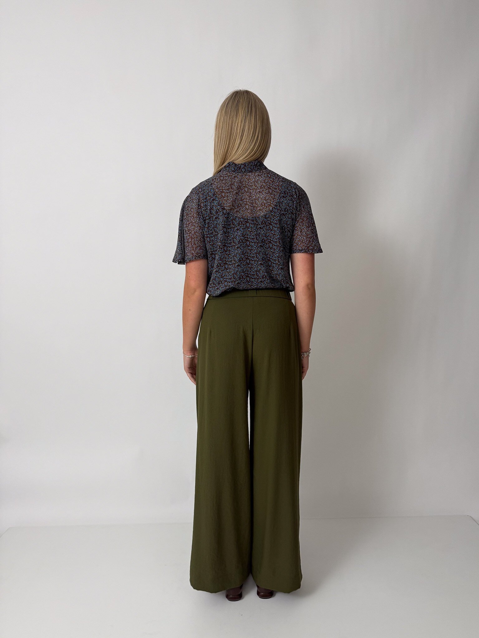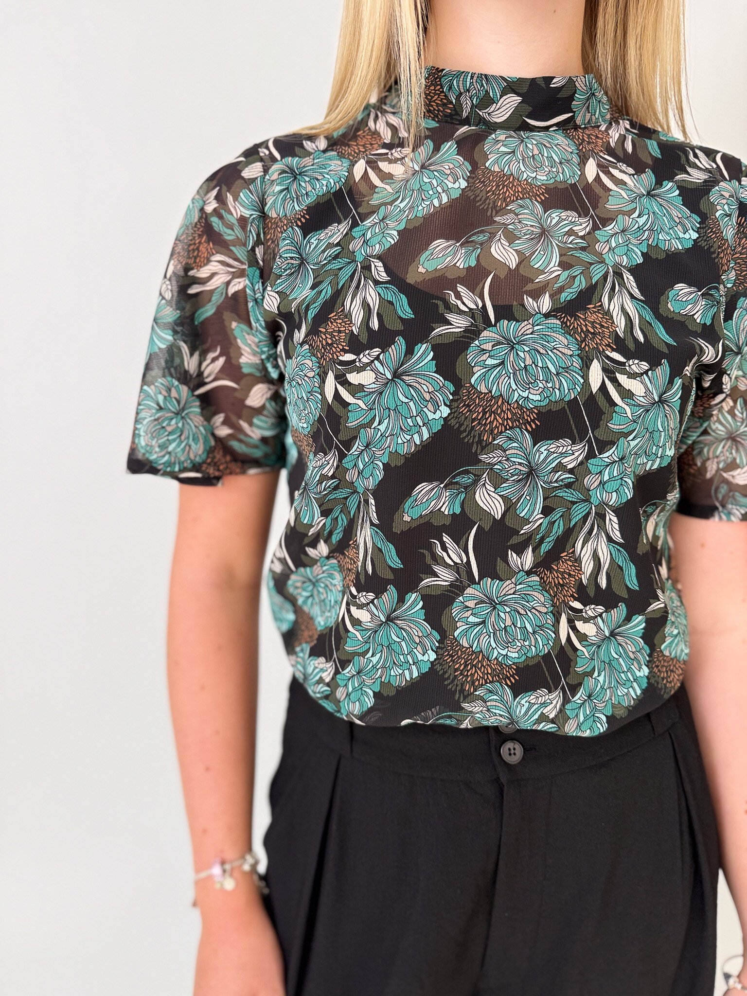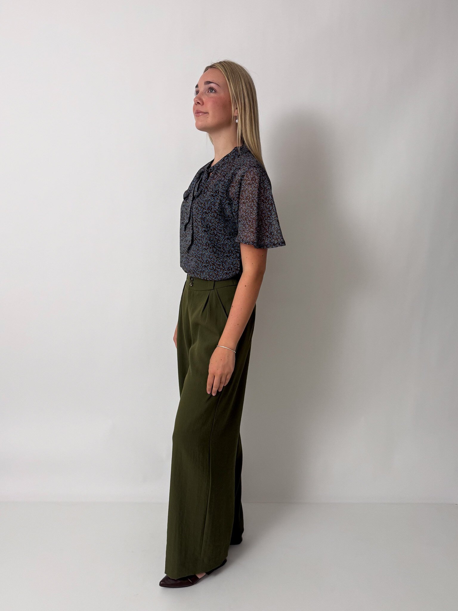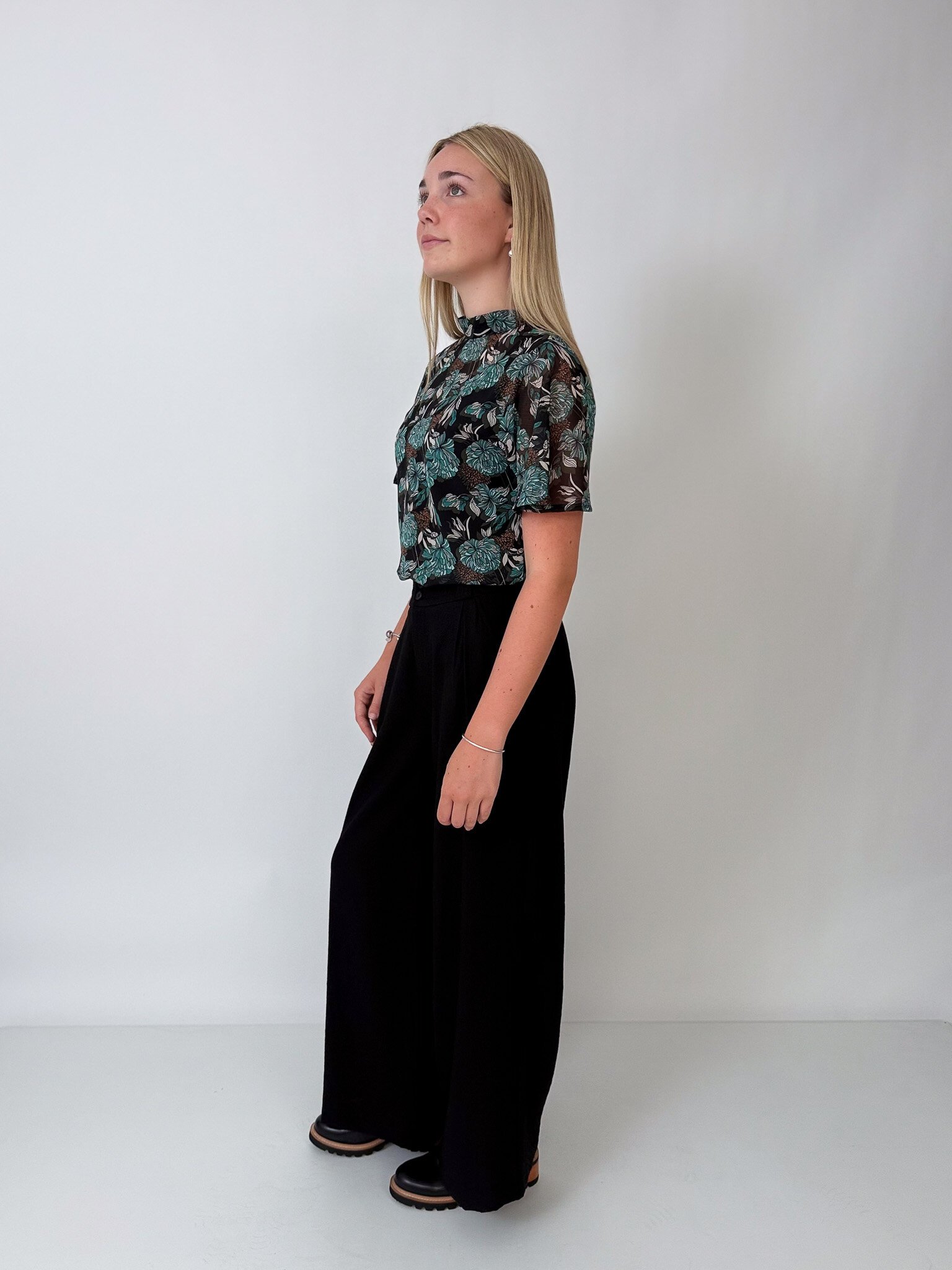 Amelia is a short sleeve reversible top with a neck tie gathered neckline and keyhole.