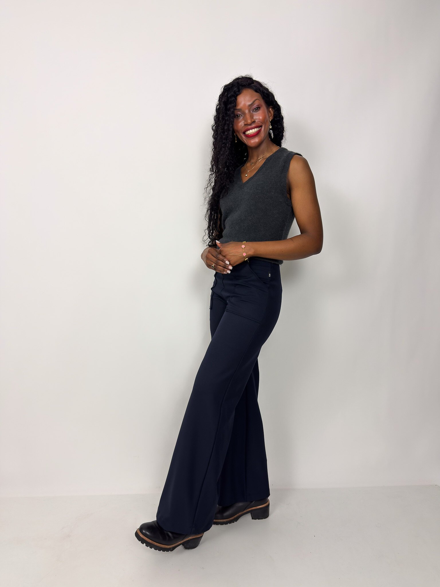 Clarke Pants for a chic work outfit. Or wear Boo Boo on its own with your favourite pants.