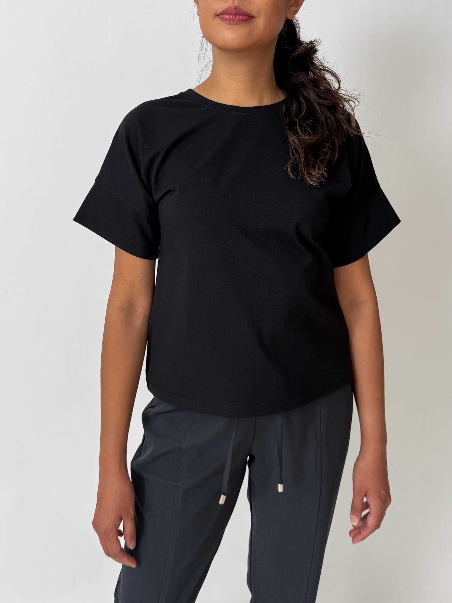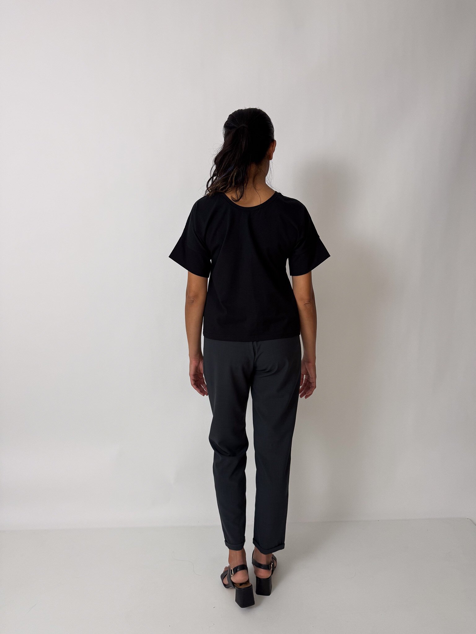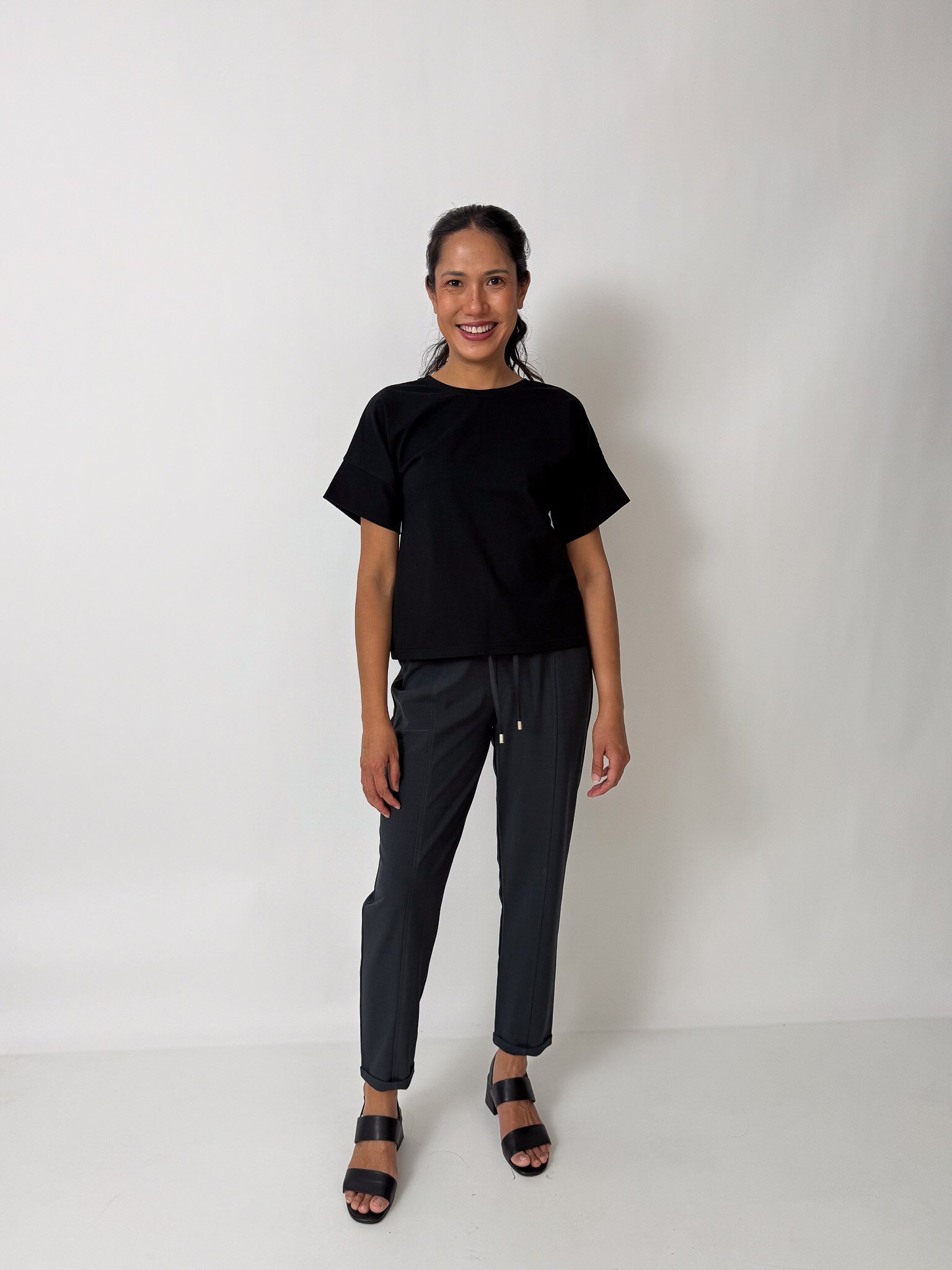 Our Bronte Top is reversible with a drop shoulder and sleeve cuff.