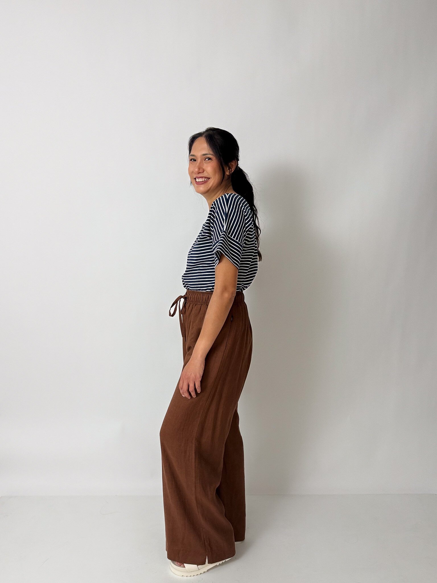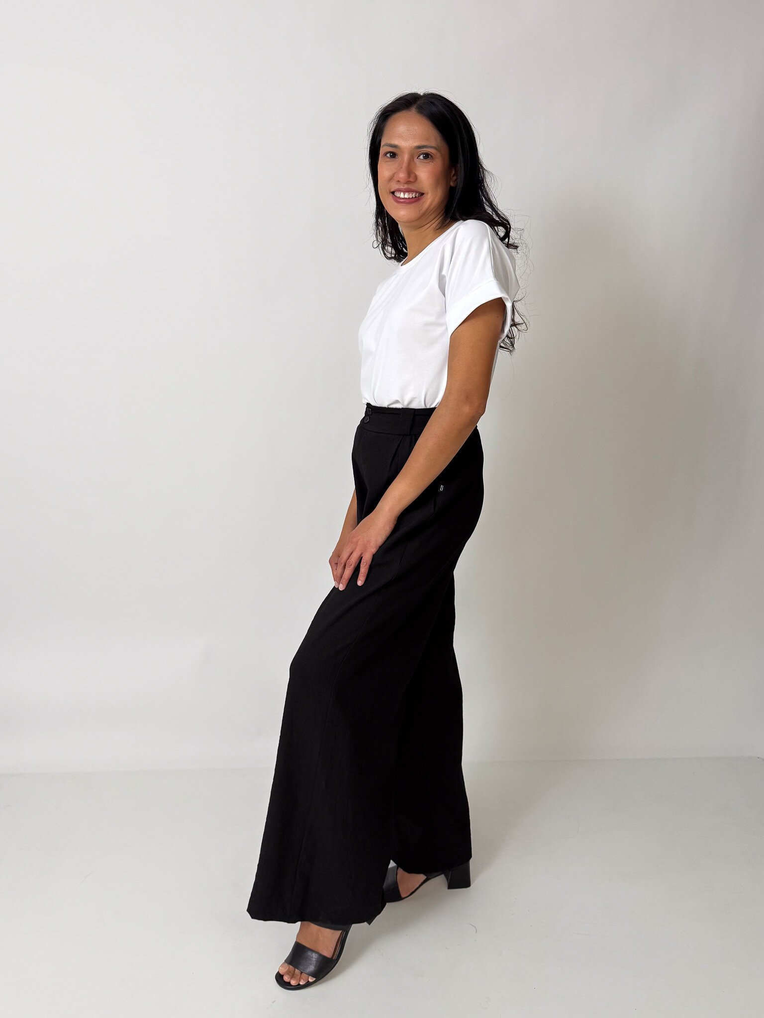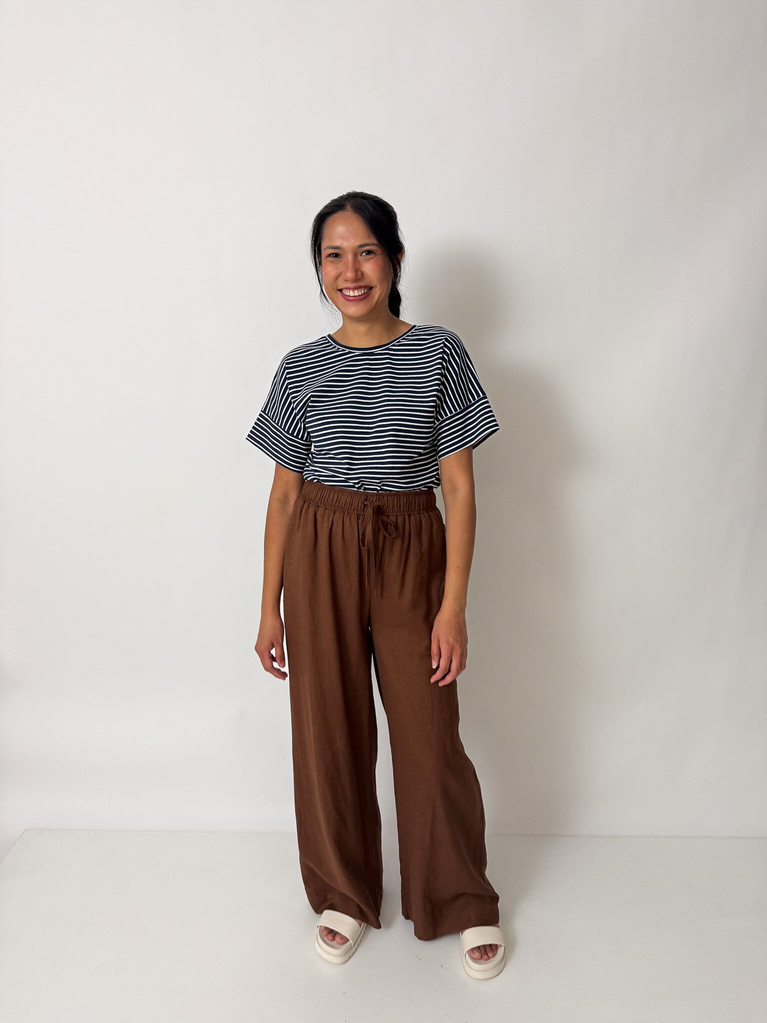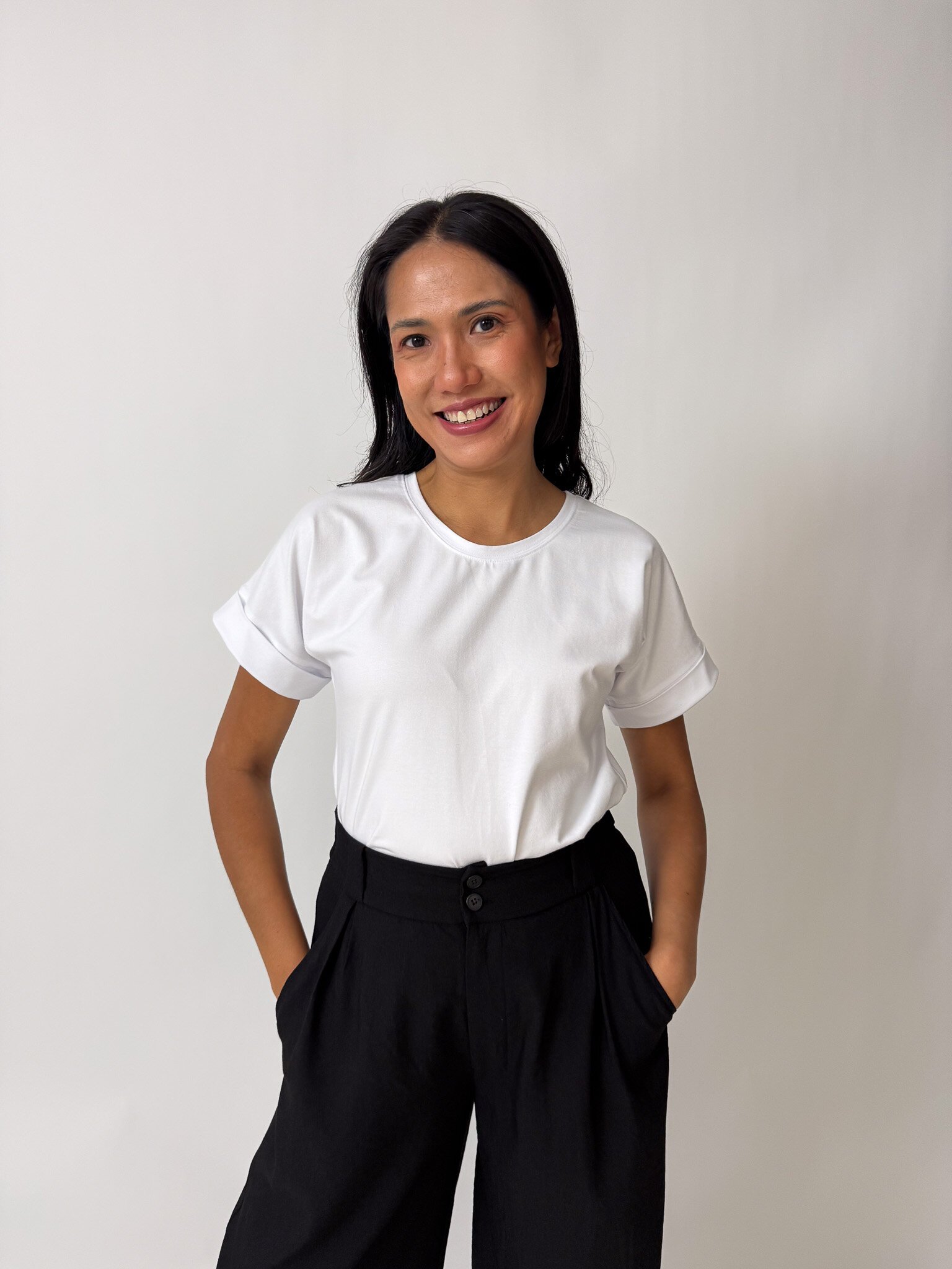 Our Bronte Top is reversible with a drop shoulder and sleeve cuff.