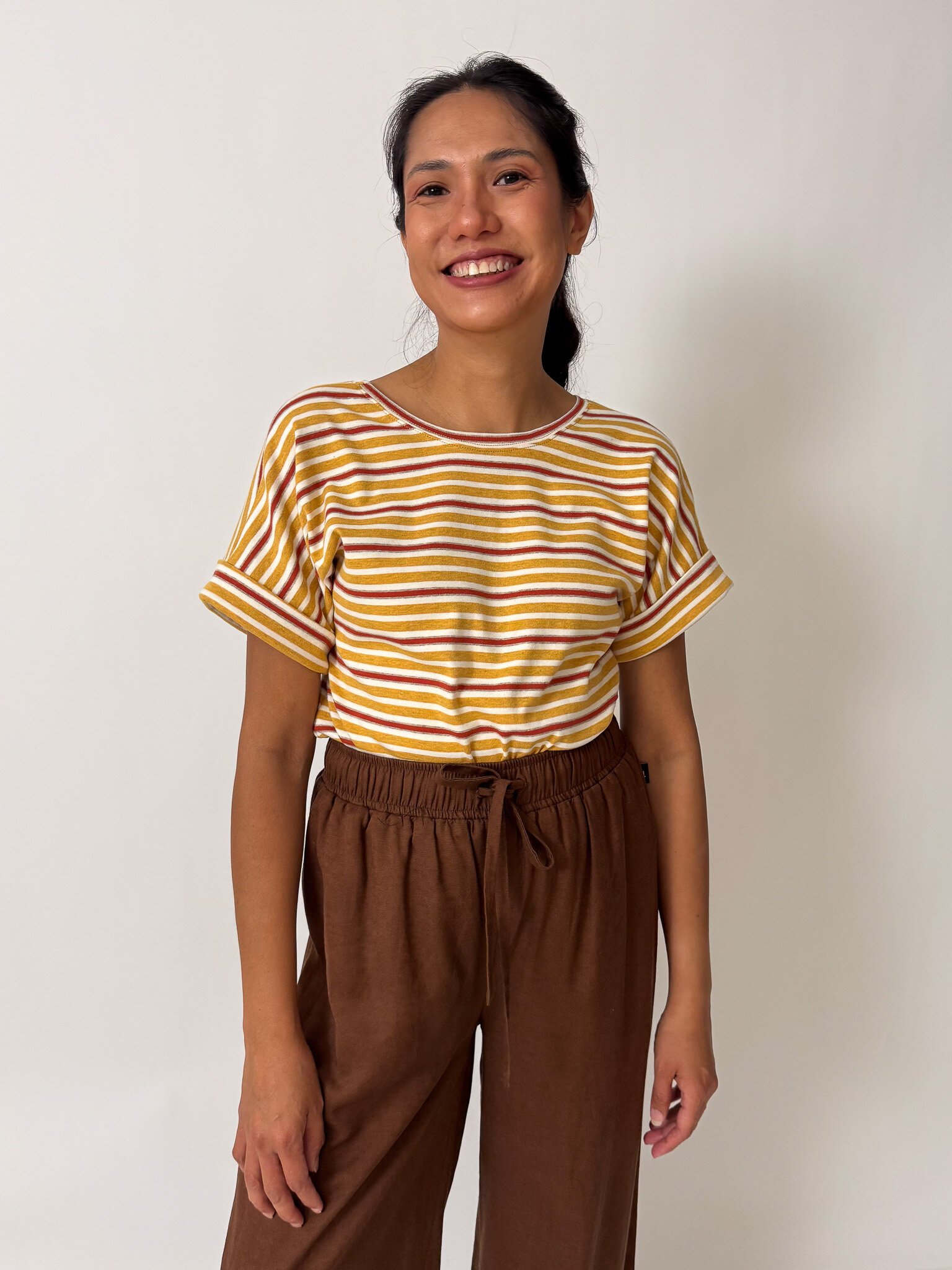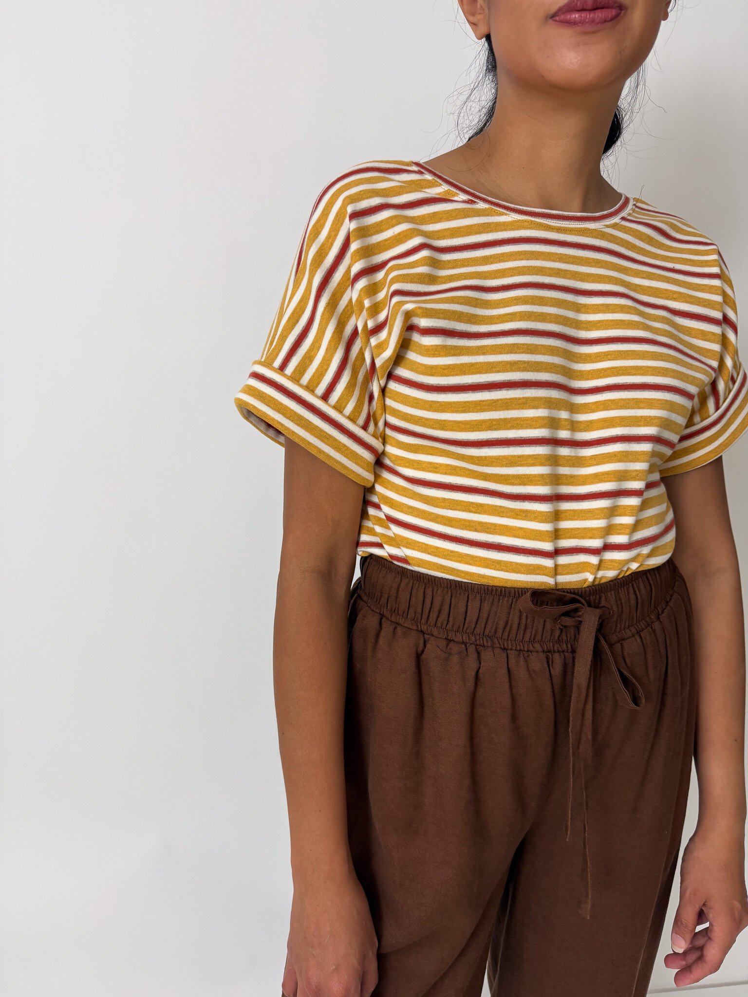 Mustard Stripe, Navy Stripe - 95% Cotton / 5% Spandex