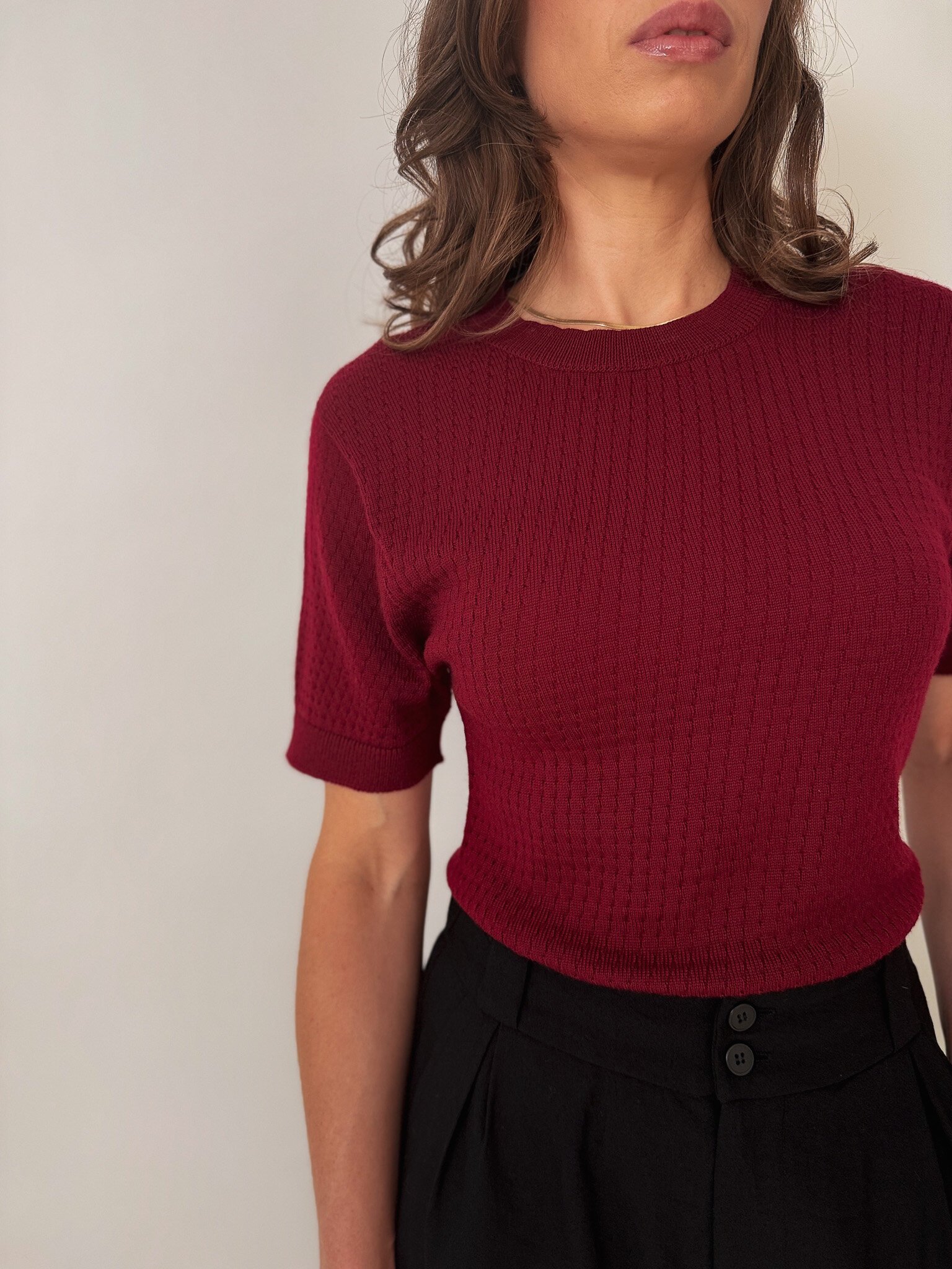Our Charlie Top is a knitted t-shirt with a patterned detail, made out of 100% Merino.