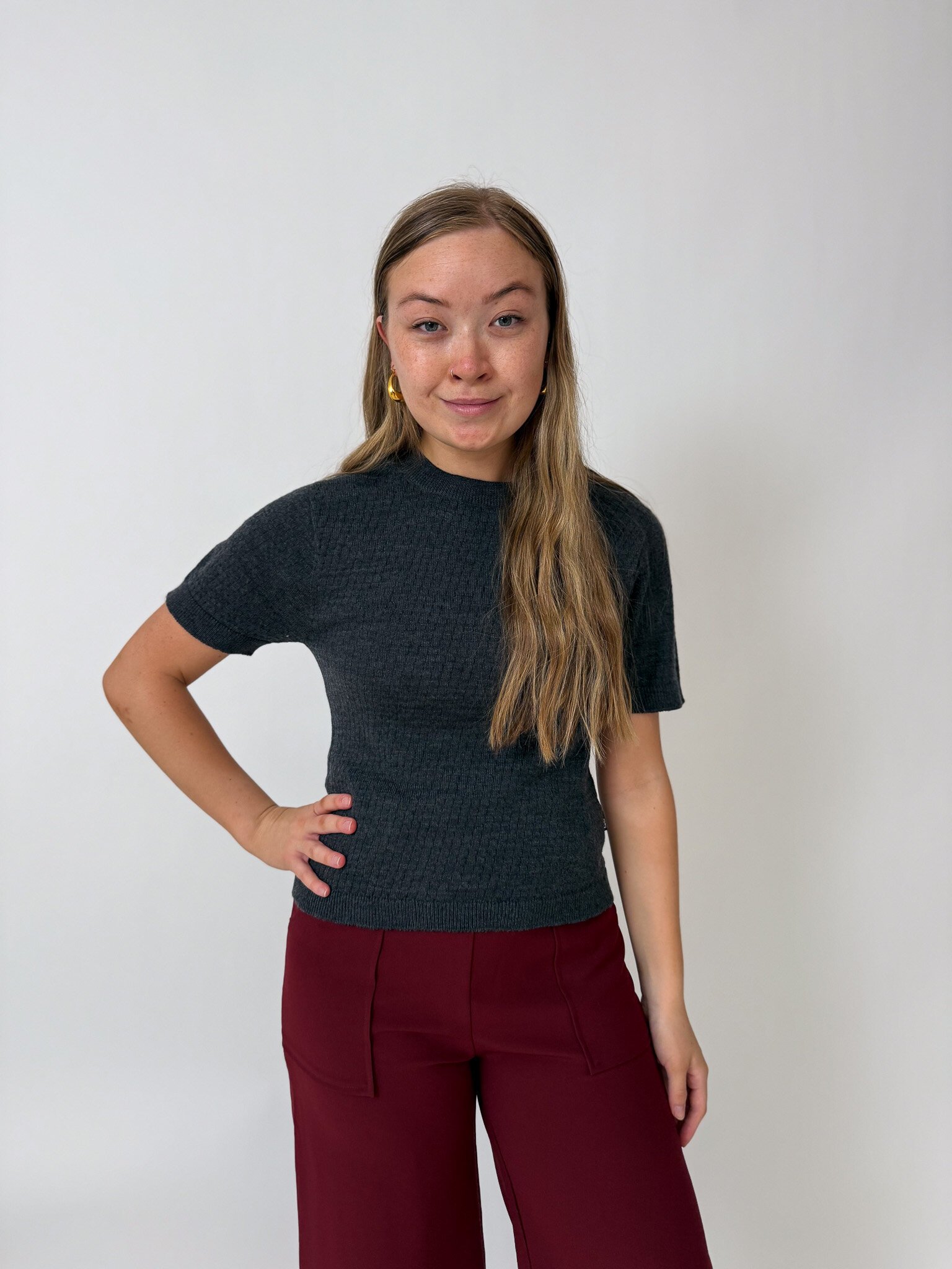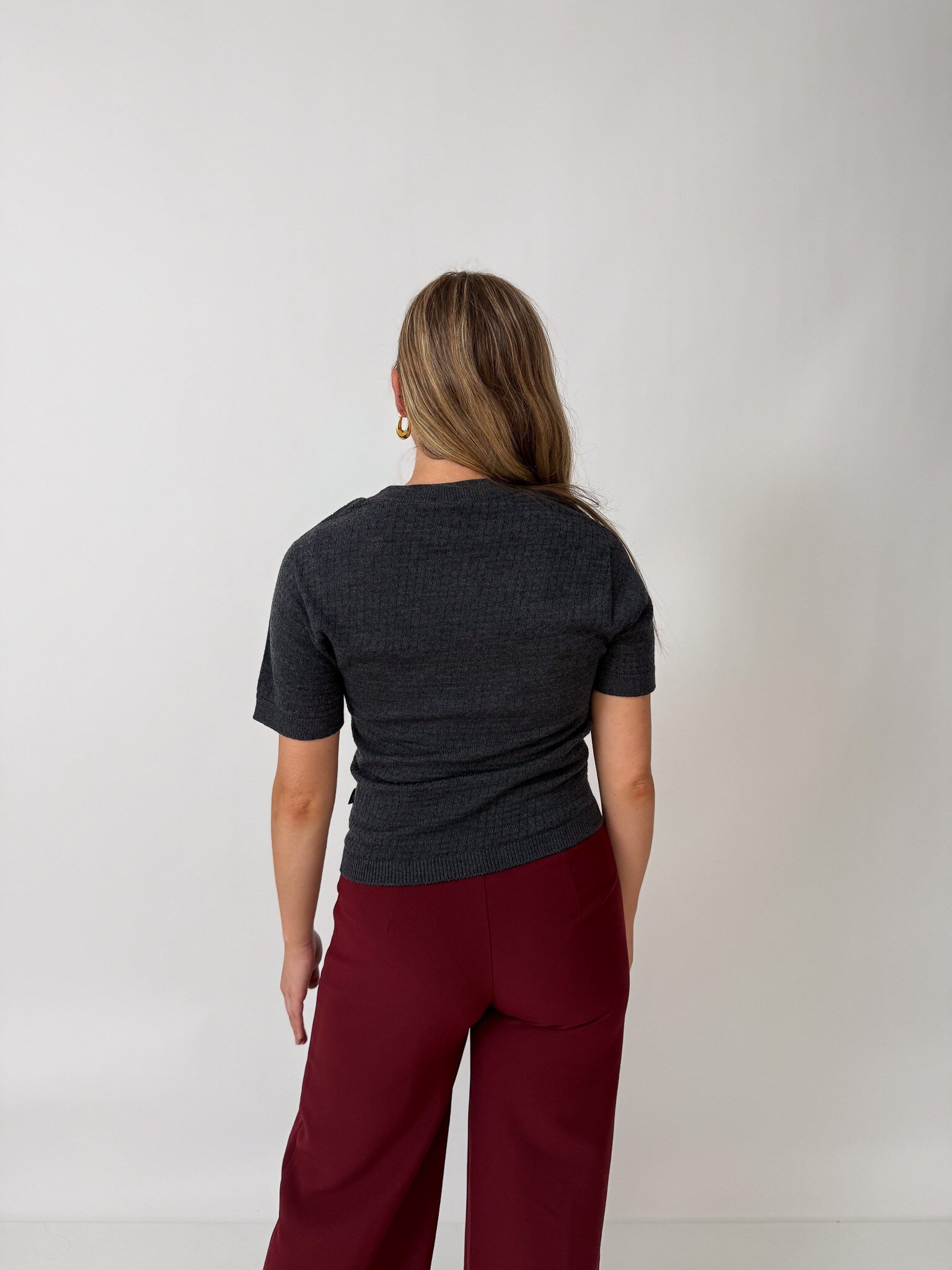 Our Charlie Top is a knitted t-shirt with a patterned detail, made out of 100% Merino.