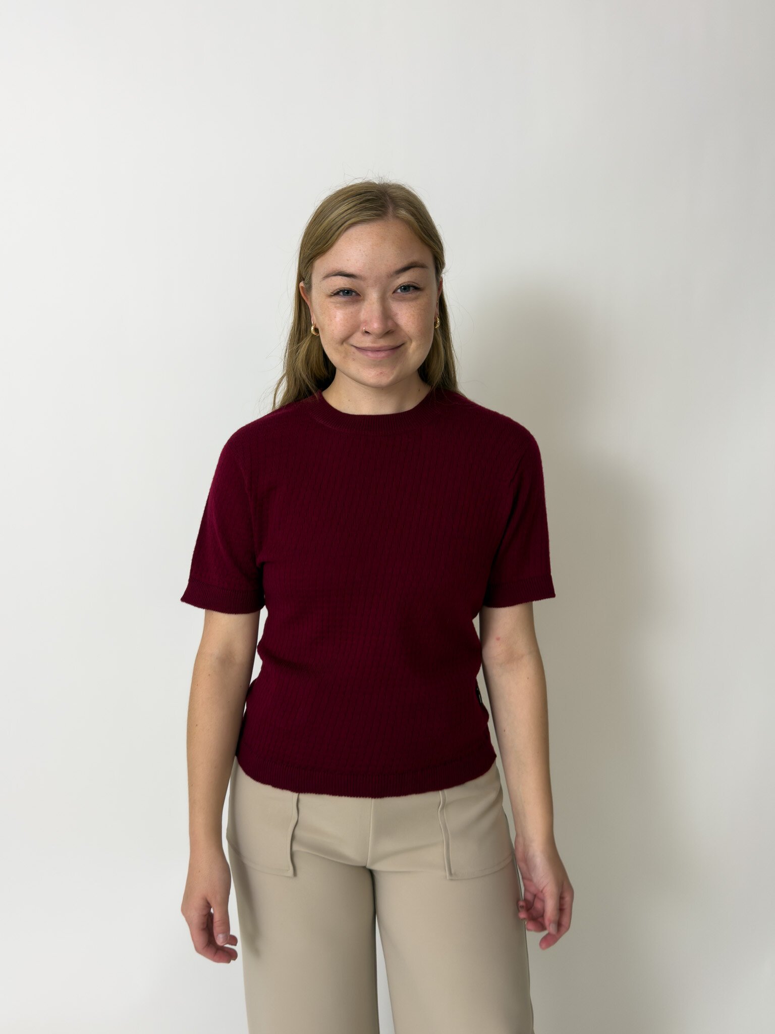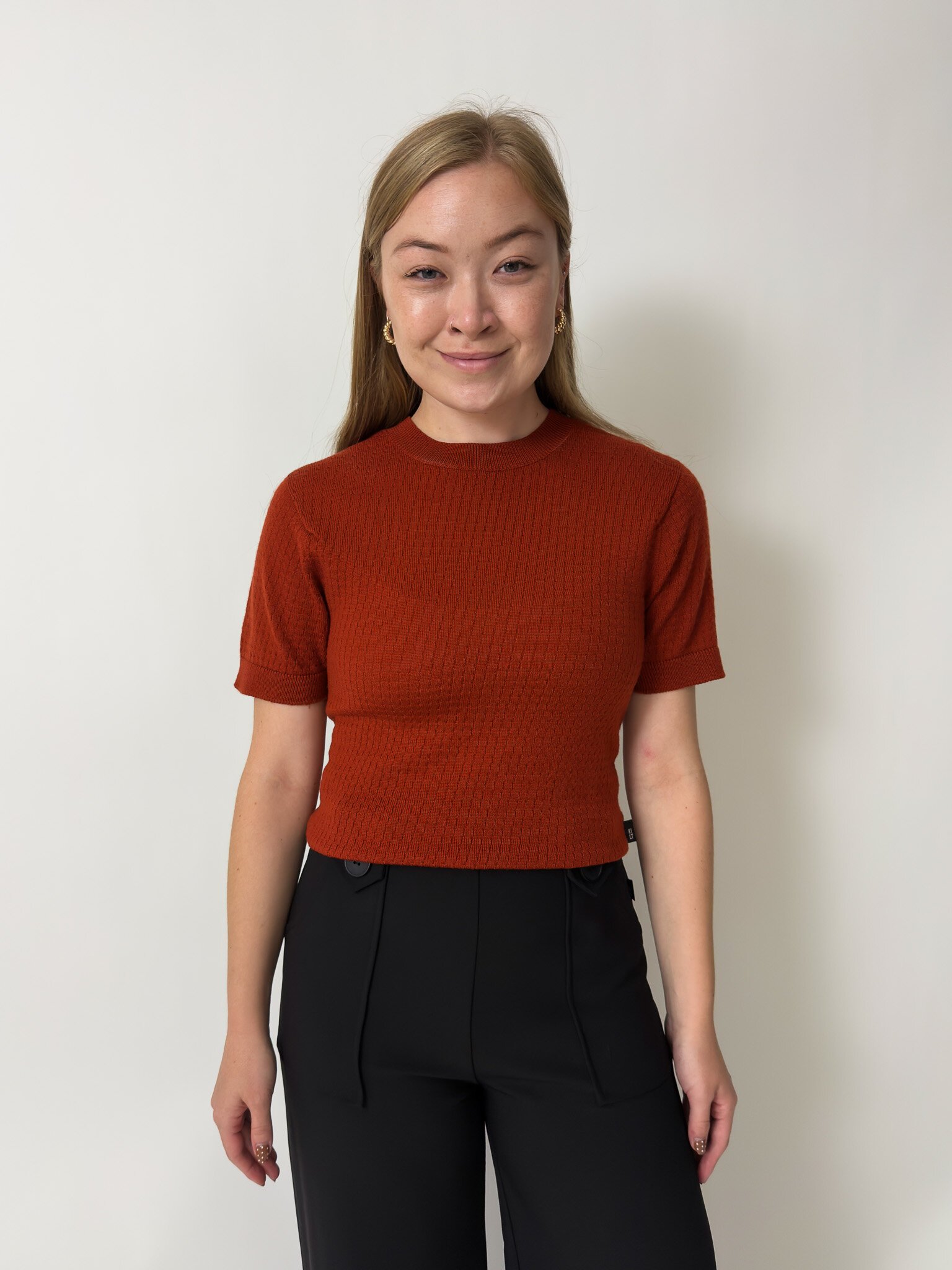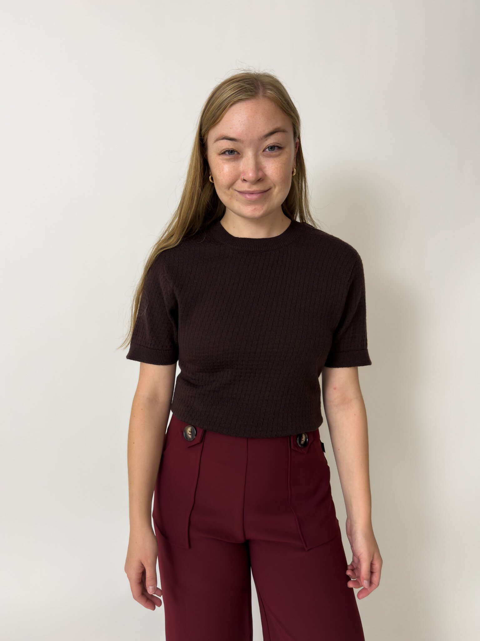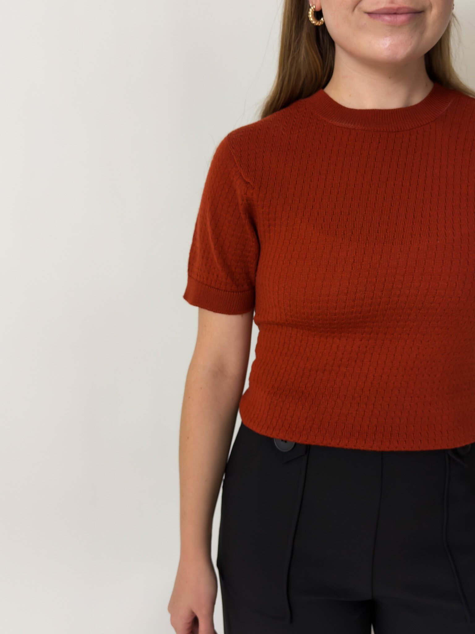 Our Charlie Top is a knitted t-shirt with a patterned detail, made out of 100% Merino.