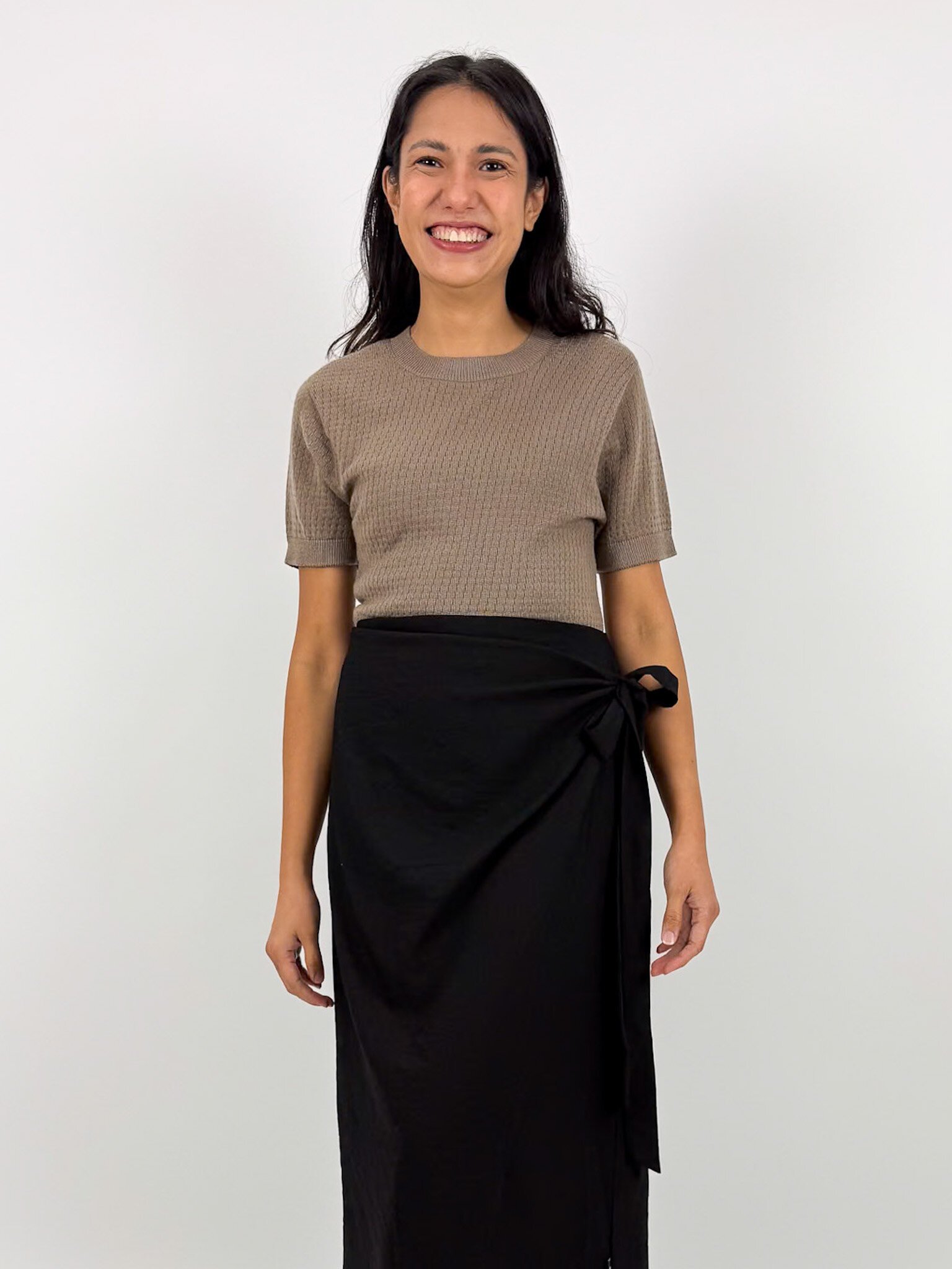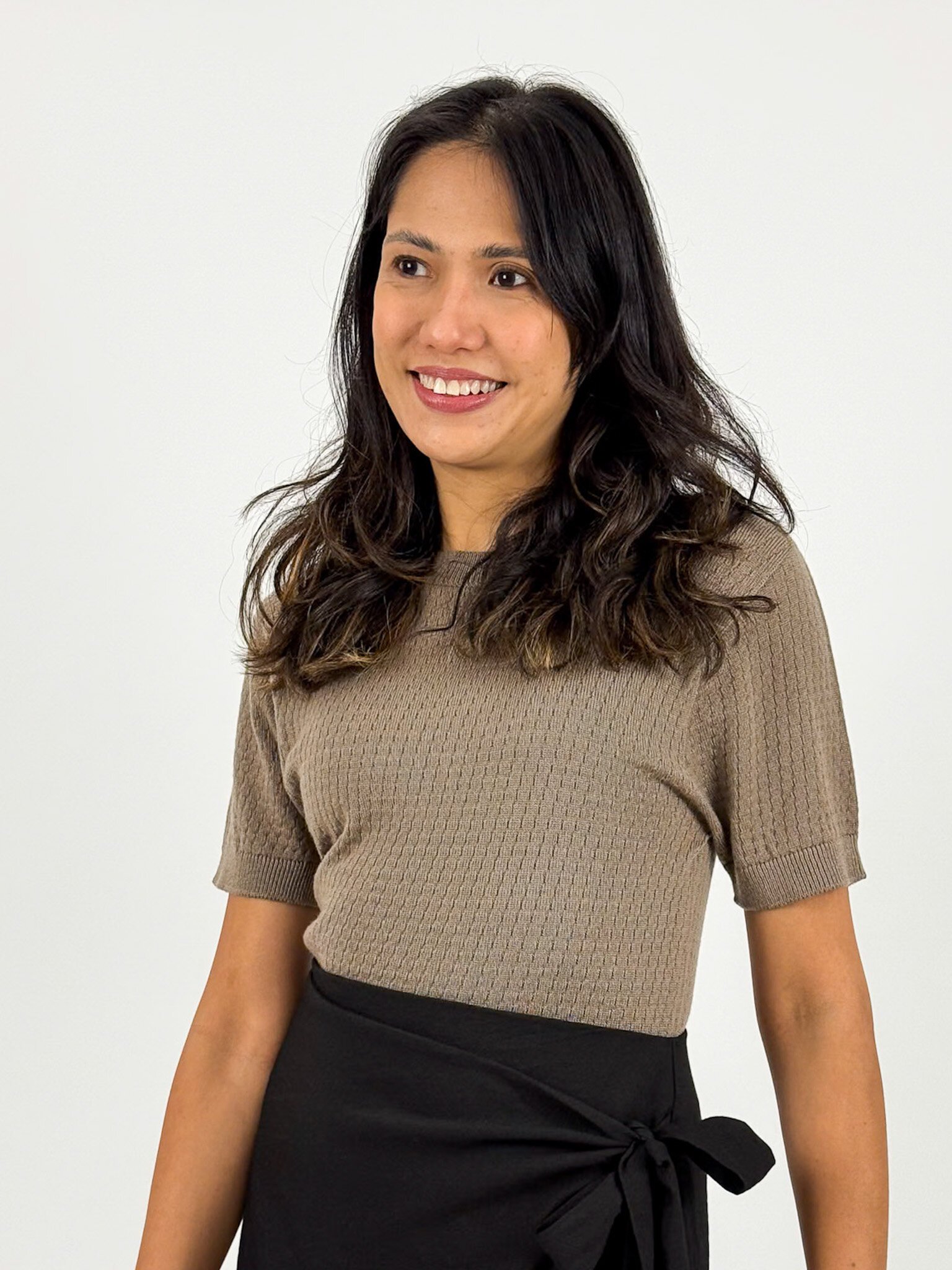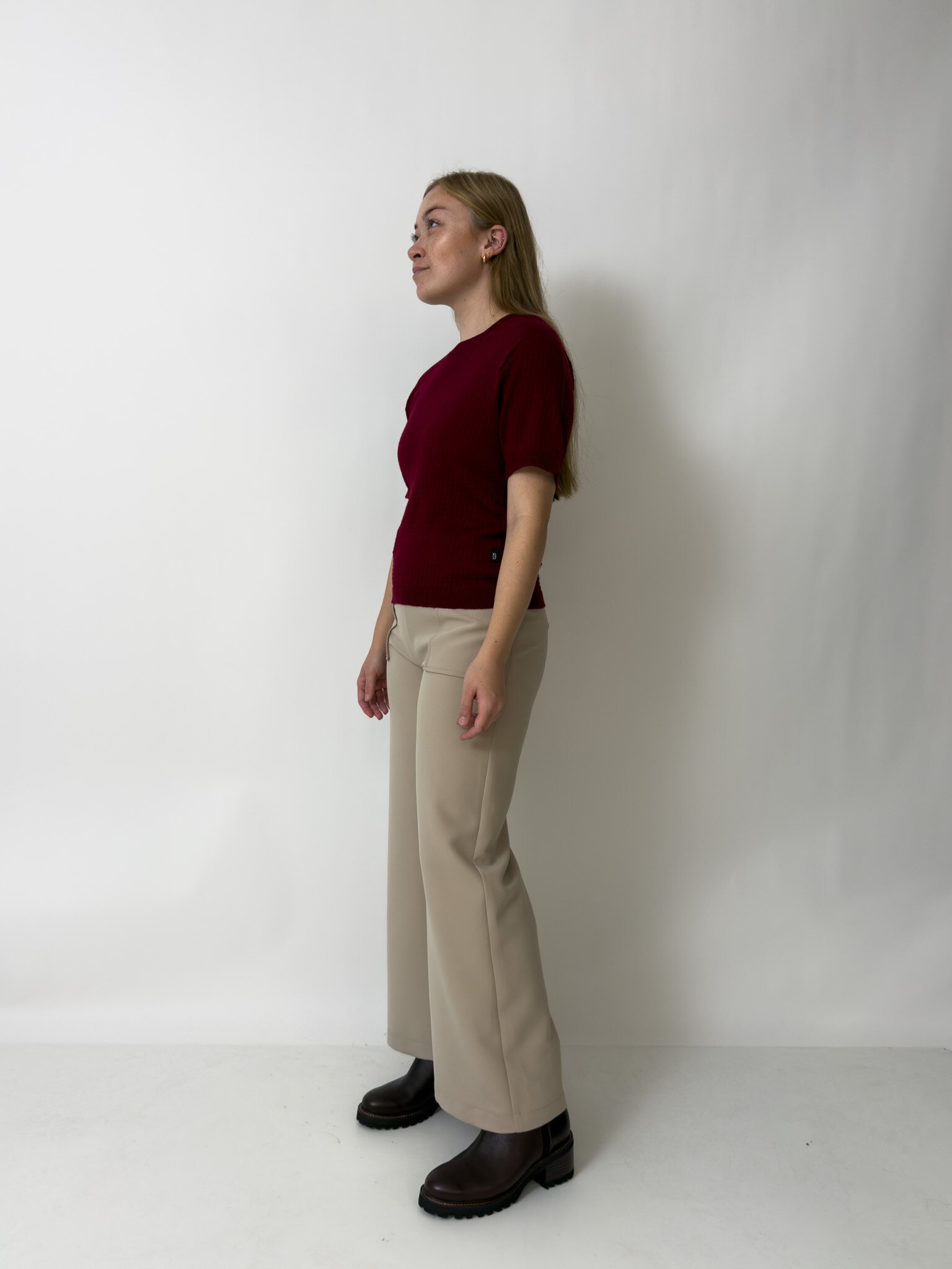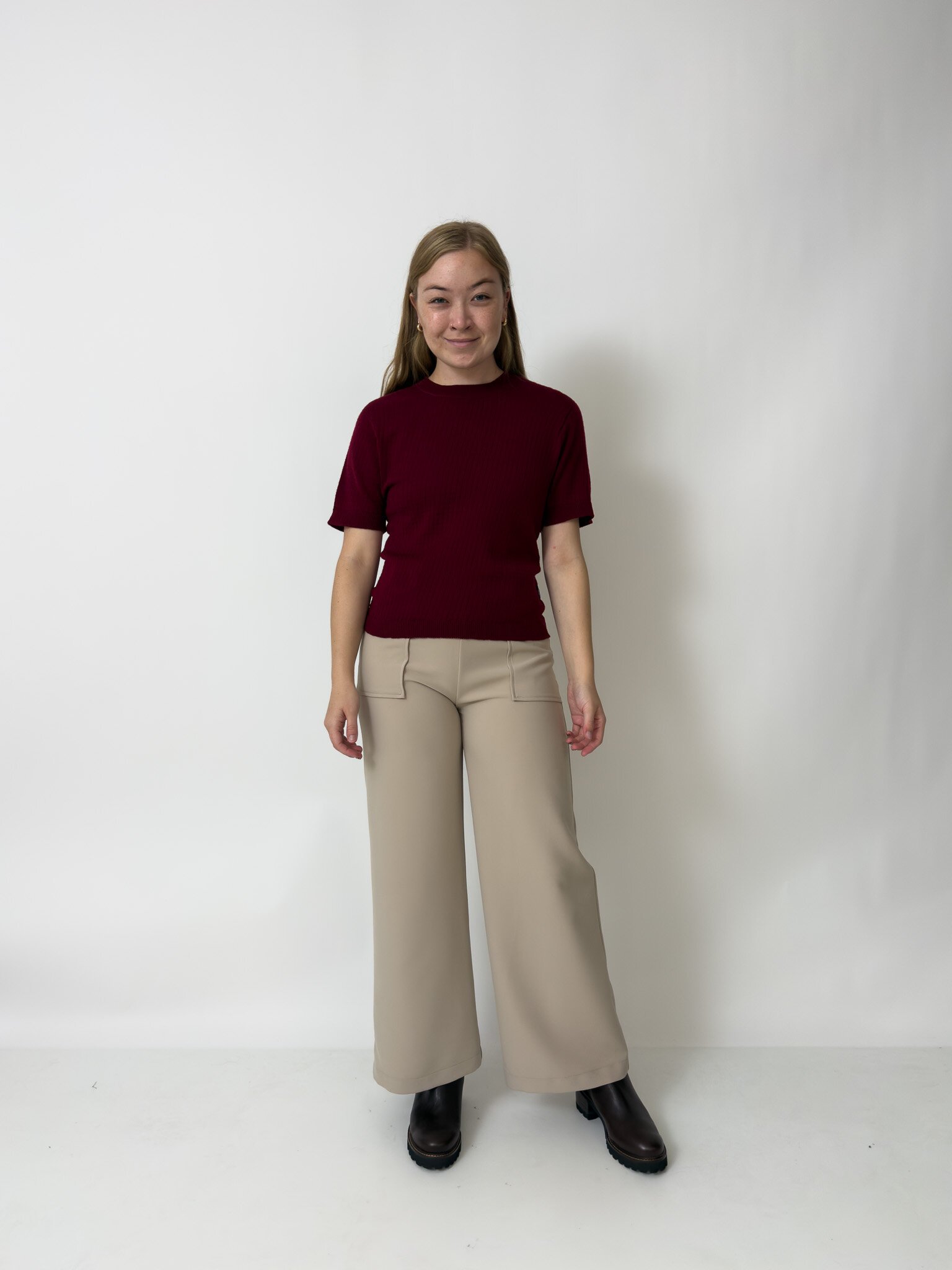 Our Charlie Top is a knitted t-shirt with a patterned detail, made out of 100% Merino.