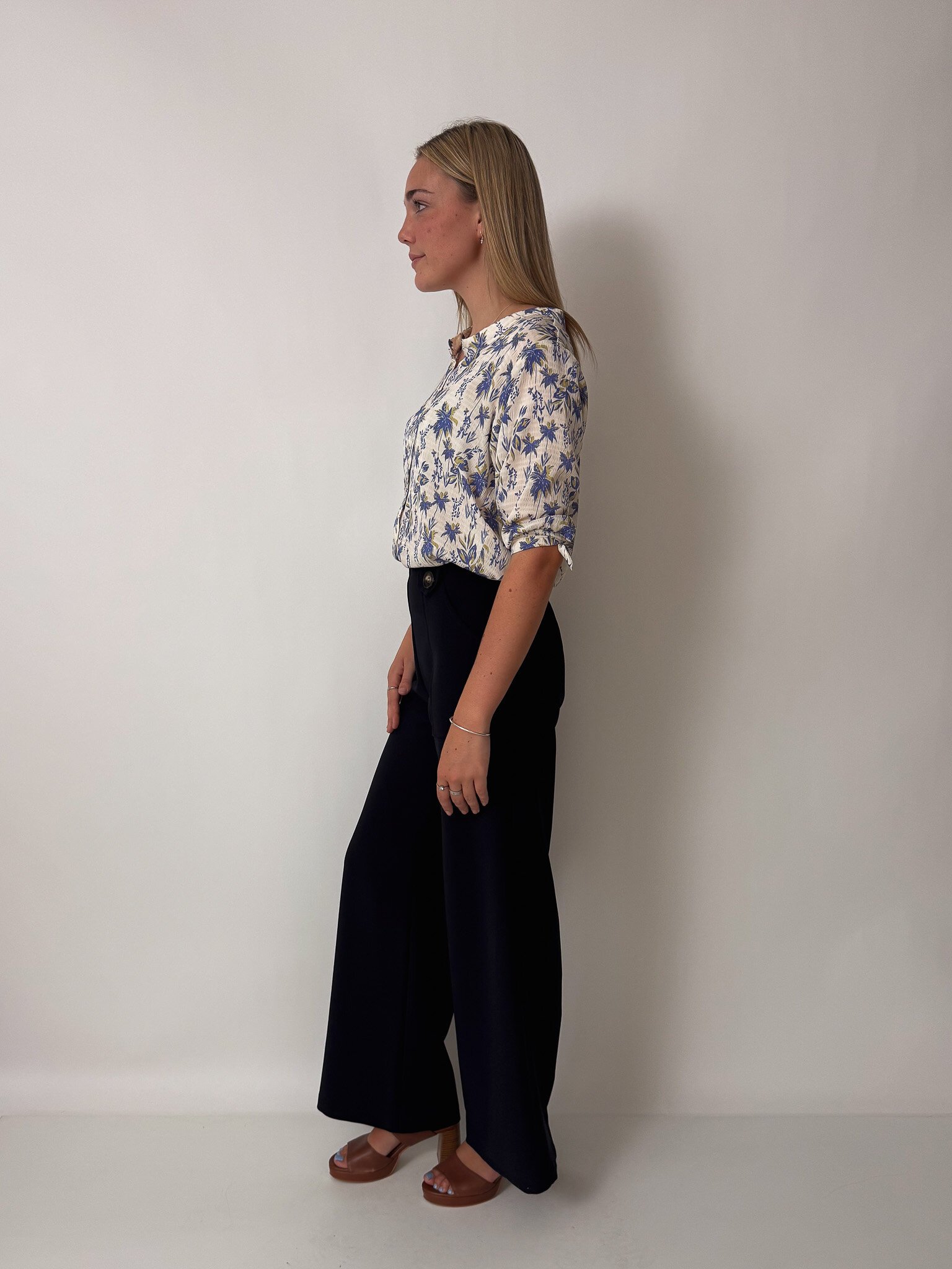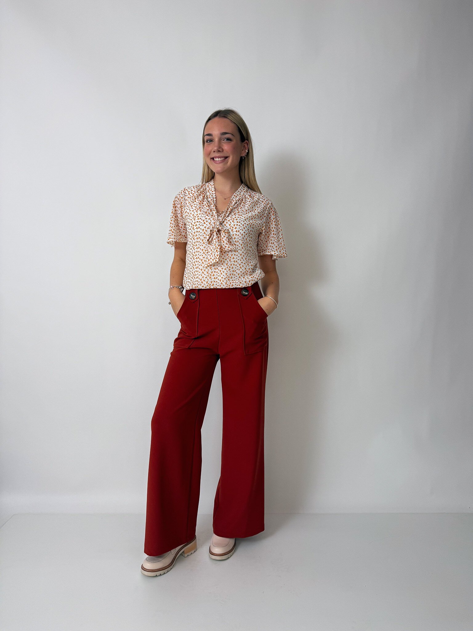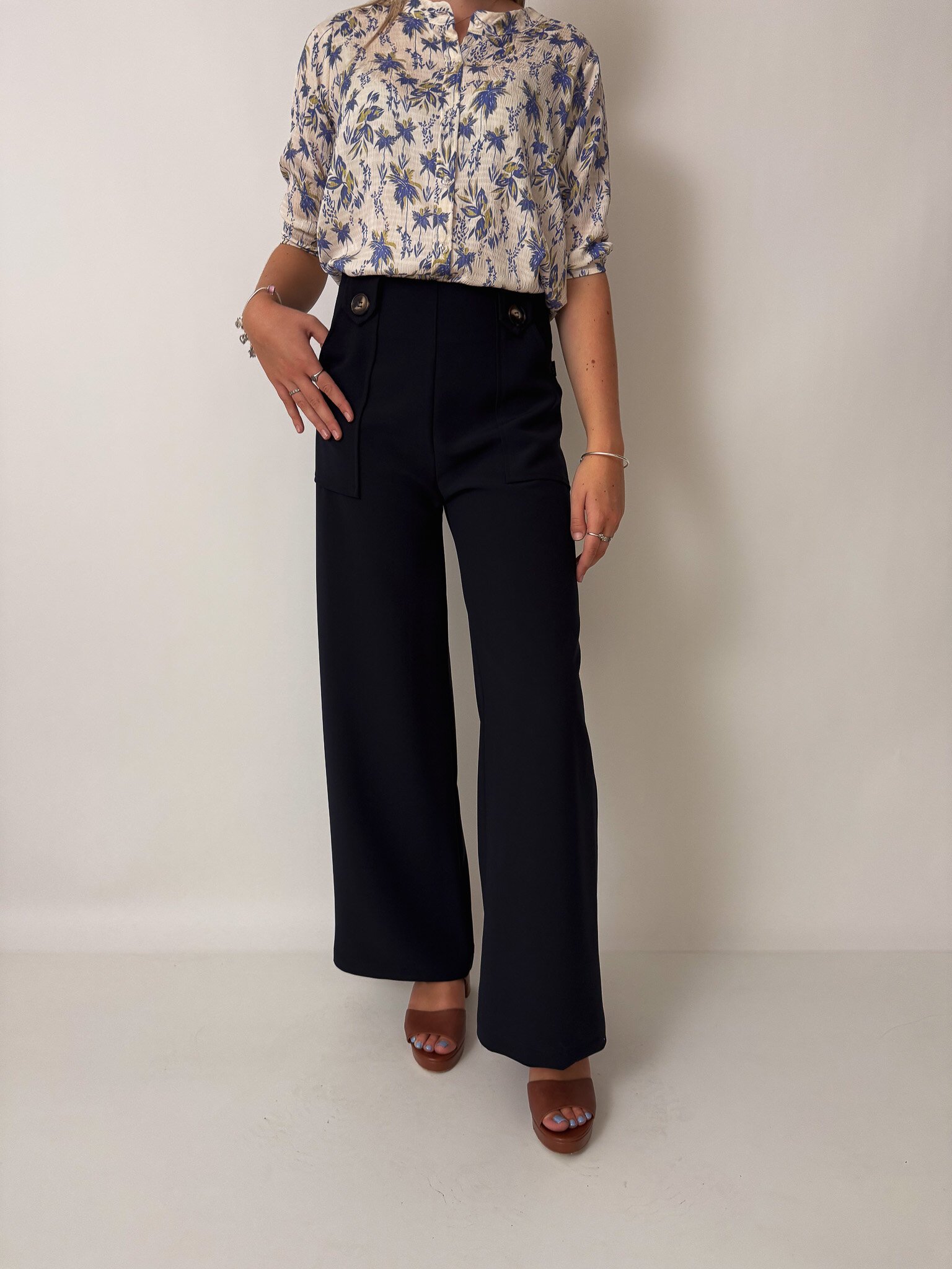 Our flattering Clarke Pants make you feel tall and curvy at the same time! Featuring a high waist, an invisible zip closure, a wide leg and cute patch pockets with buttons.