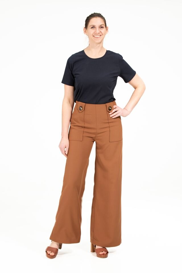 Our flattering Clarke Pants make you feel tall and curvy at the same time! Featuring a high waist, an invisible zip closure, a wide leg and cute patch pockets with buttons.