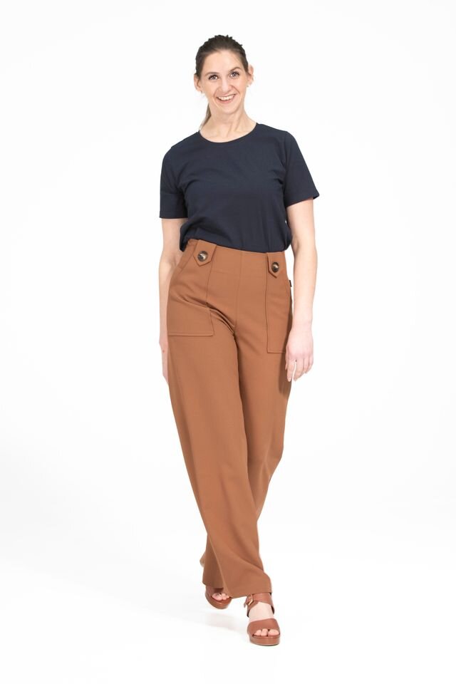Our flattering Clarke Pants make you feel tall and curvy at the same time! Featuring a high waist, an invisible zip closure, a wide leg and cute patch pockets with buttons.
