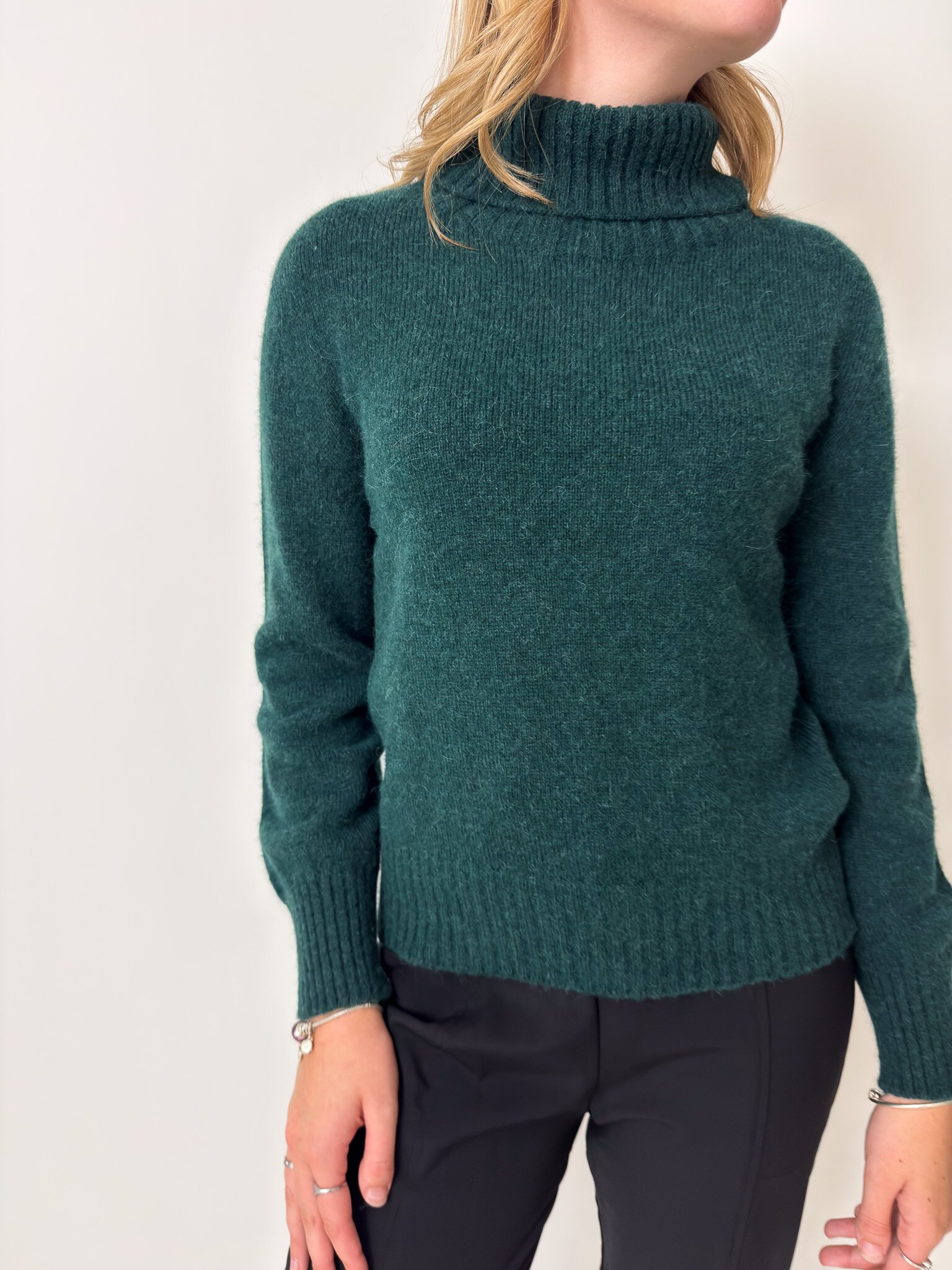 John is a roll neck jumper with an oversized fit and a large cuff and hem rib detail. Made in our snuggly 40% Alpaca, 40% Merino, 20% Trevira blend.