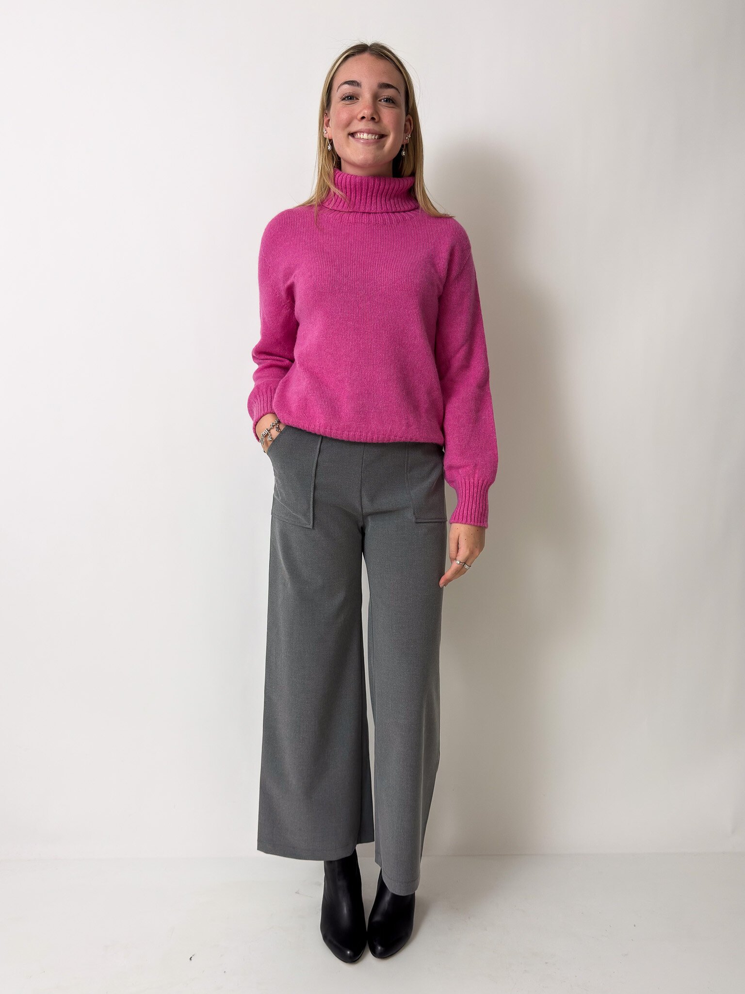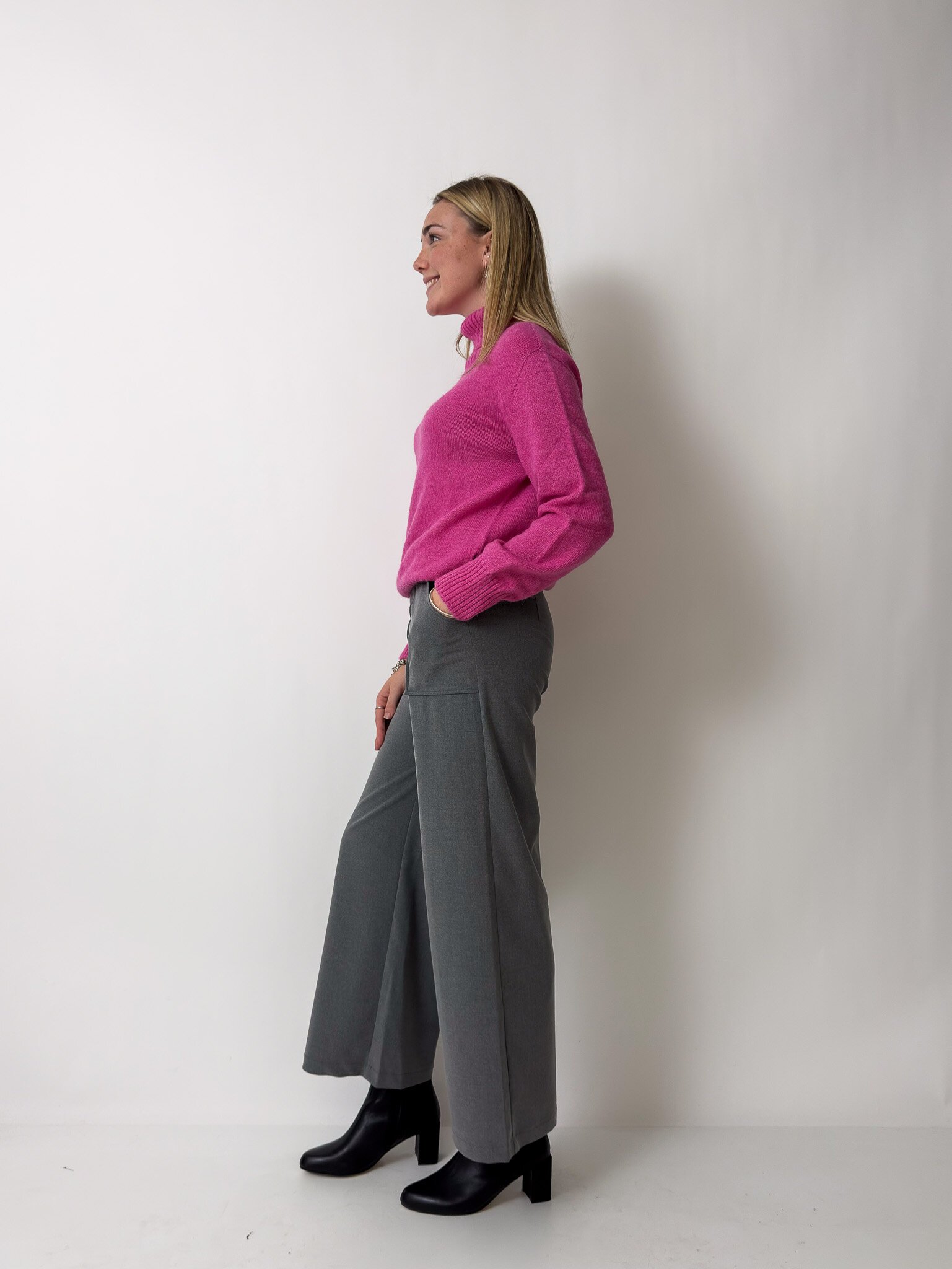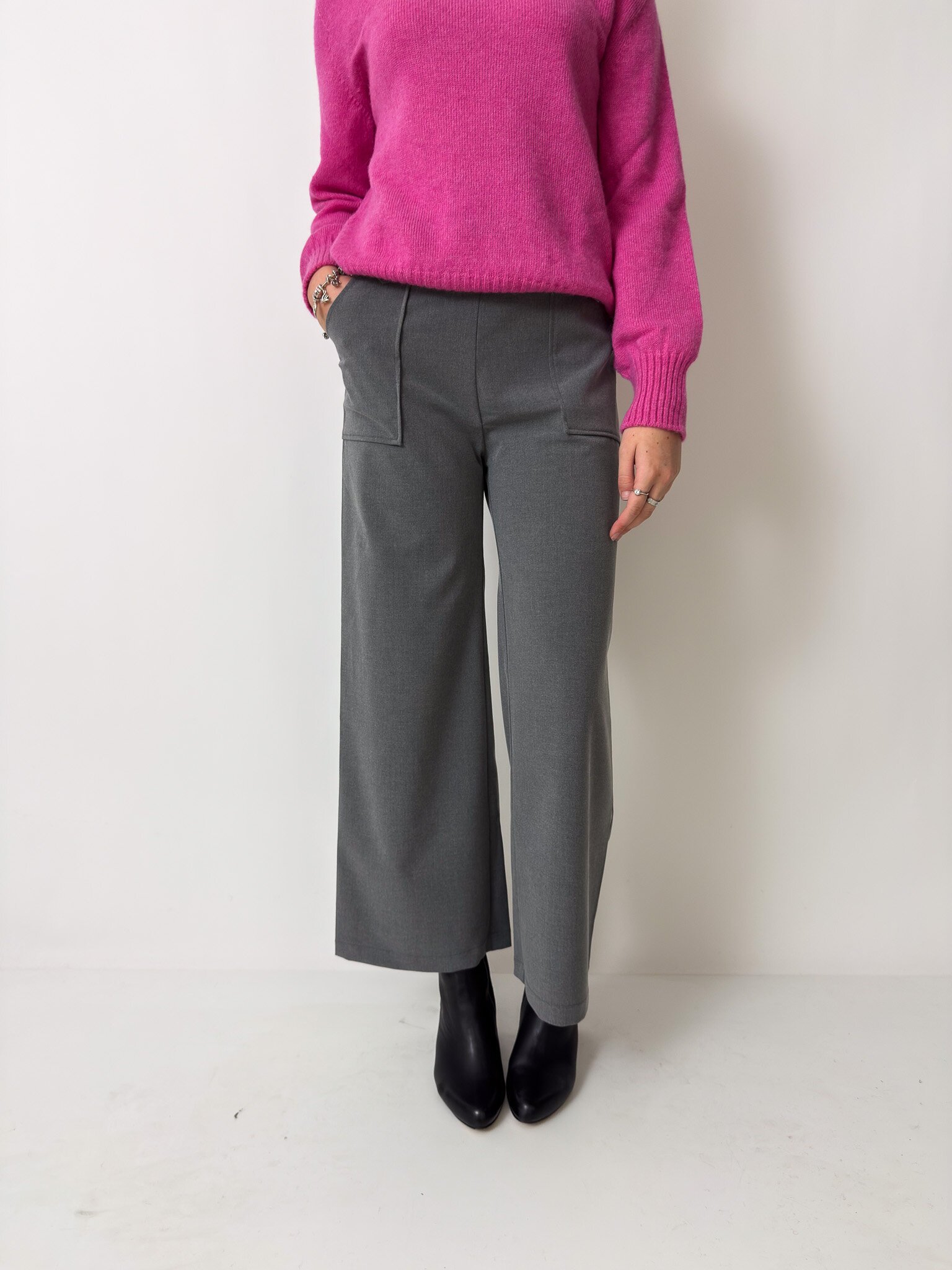 Featuring a high waist, an invisible zip closure, a wide leg and cute patch pockets with buttons.