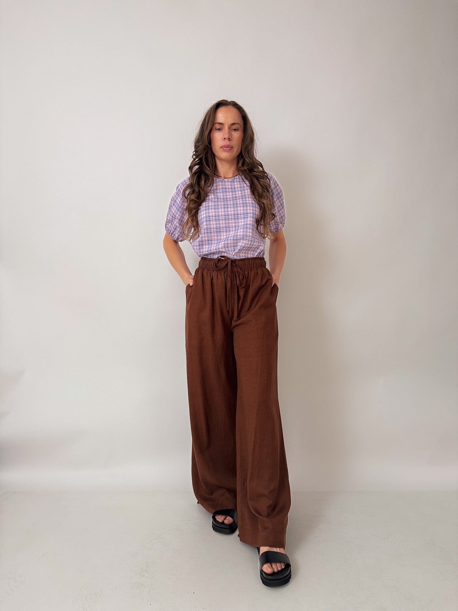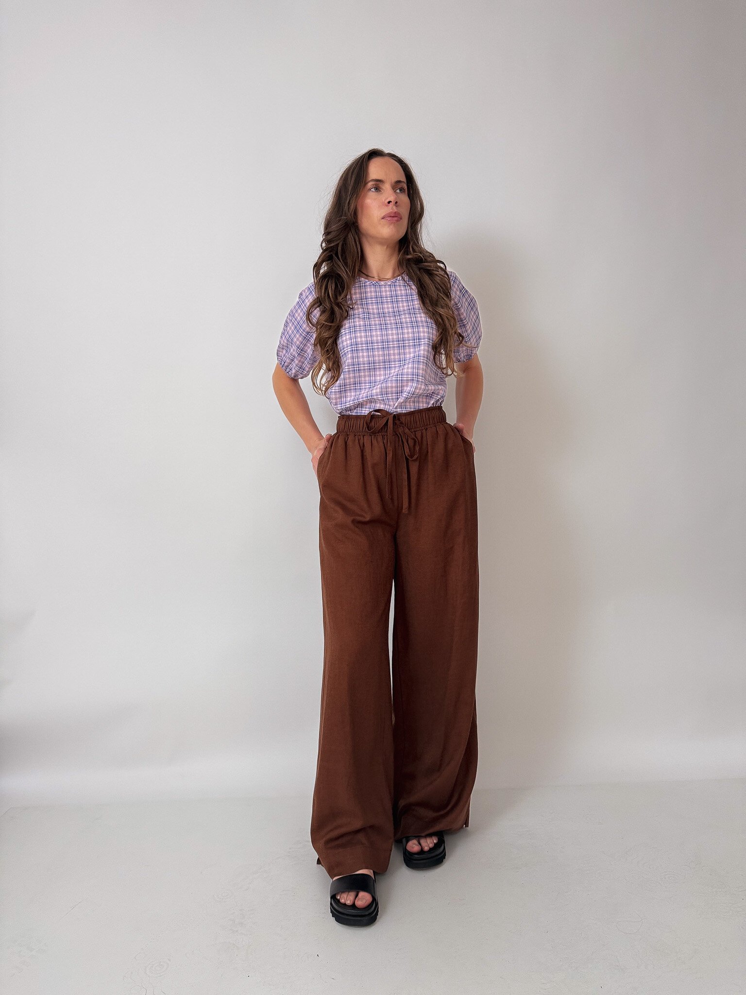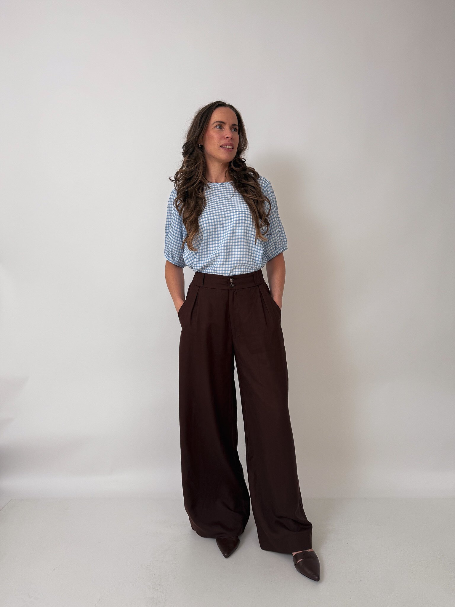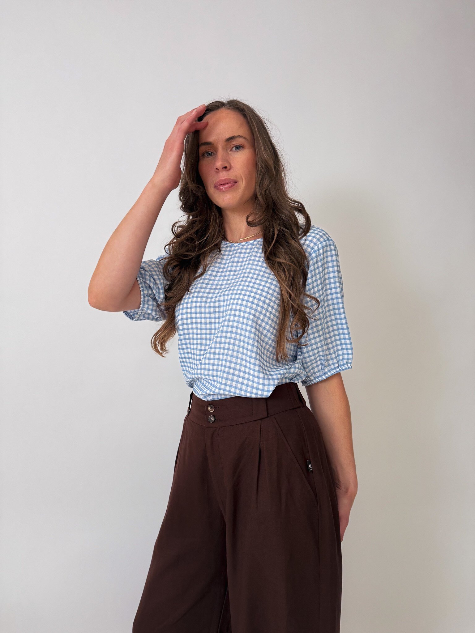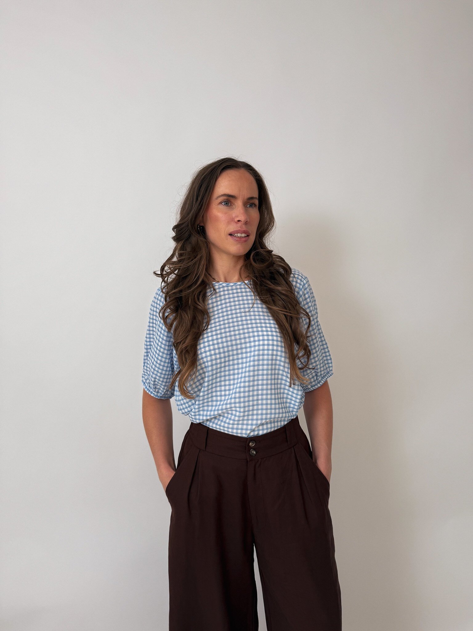 This loose-style top drapes beautifully and features a drawstring hem to tighten and tie into a bow or leave out for a looser fit. With elasticated sleeves to push up and 'puff ' or leave down. This top is of course a reversible style, wear with a round neck to the front or flip Maggie around for a v-neck option.