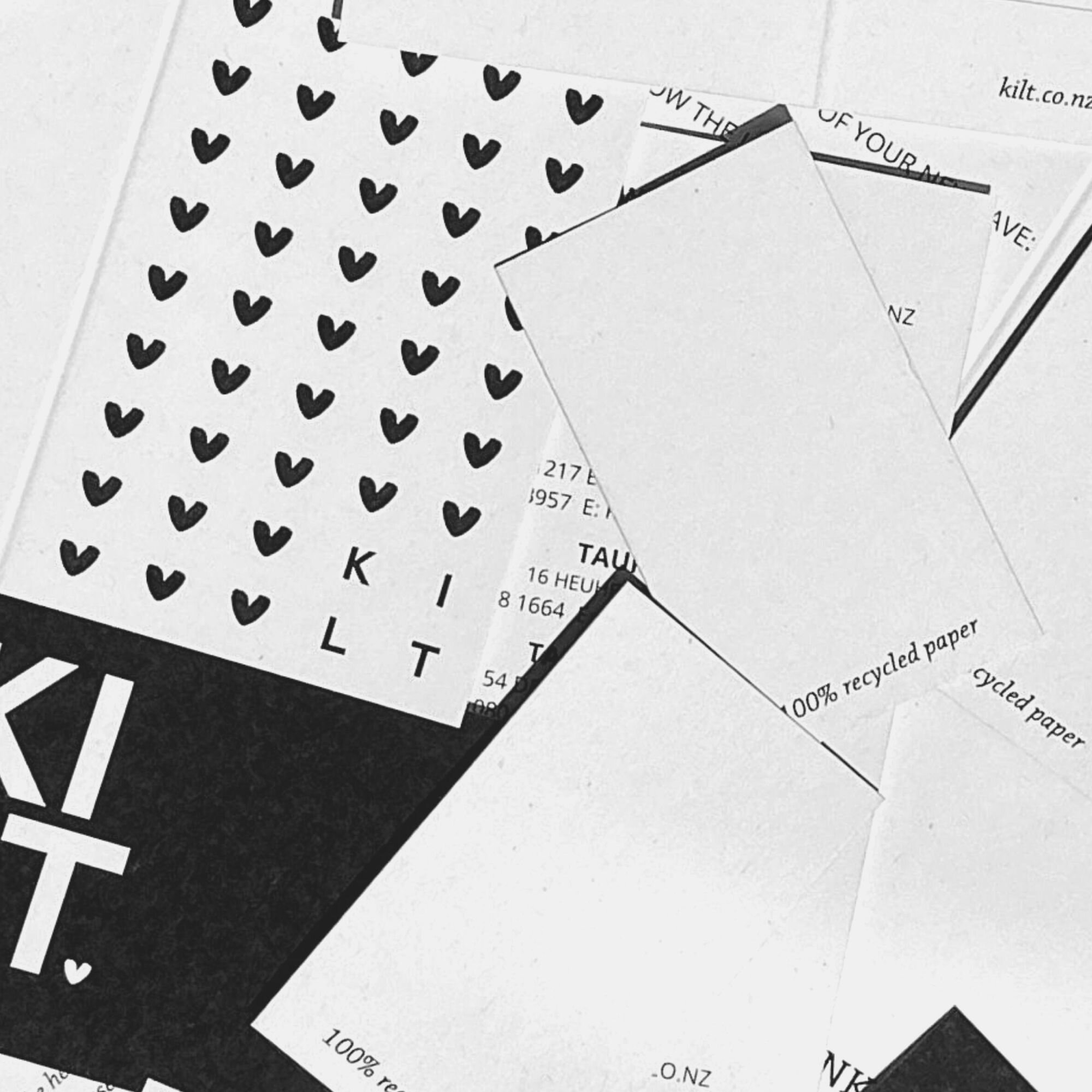 We choose to use recycled cards for all of our garment tags, gift cards, garment care cards anything card! Plus every time we do a print run our local printing partner Mammoth plants a native tree!