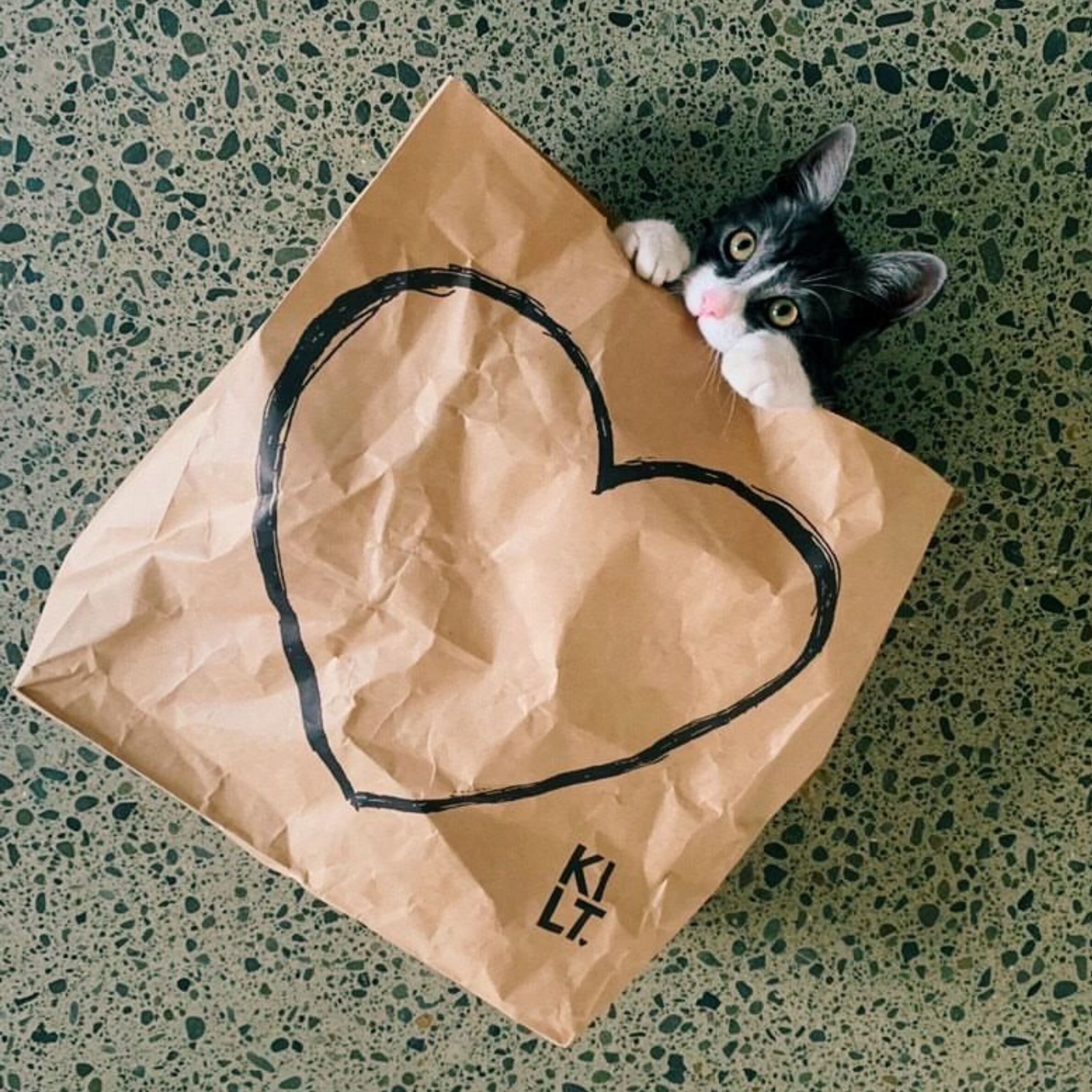 At KILT we offer brown paper bags which can be recycled or our fabric Tote Bags to take your garments home in. Having environmentally friendly bag options has always been a focus for us.