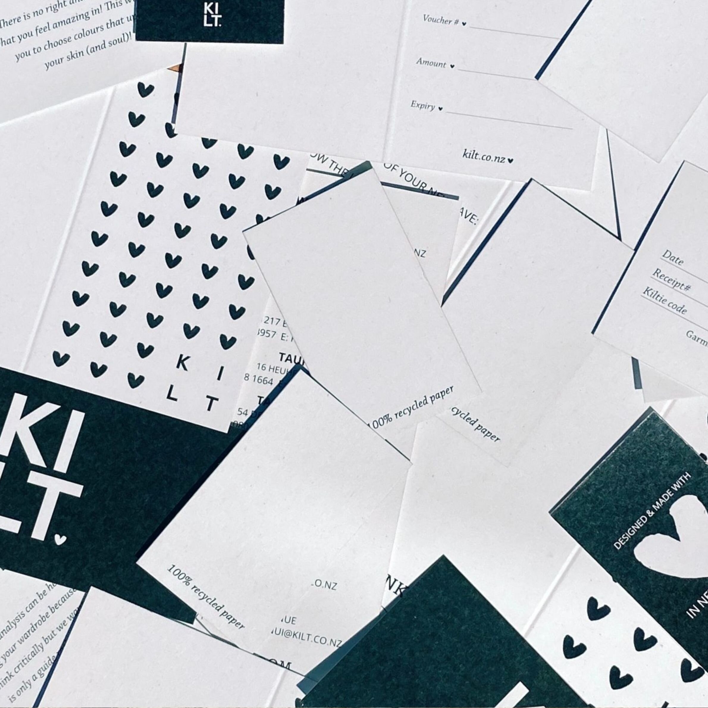 We choose to use recycled card for all of our garment tags, gift cards, garment care cards anything card! Plus every time we do a print run our local printing partner Mammoth plants a native tree!