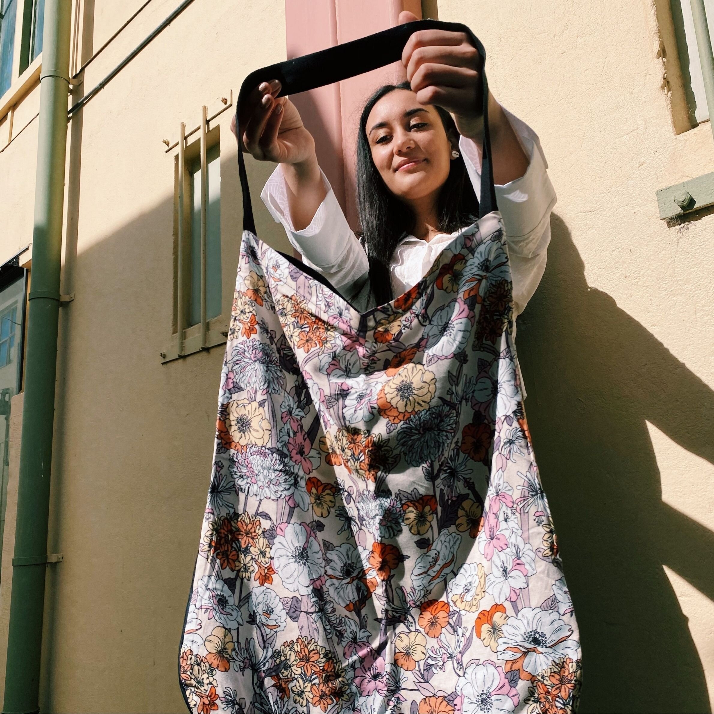 We use our fabric off-cuts to create our NZ Made Tote Bags. These are perfect bags to roll up and keep in your handbag as a plastic bag alternative. All proceeds from the sales of these bags go to planting Native Trees in NZ via Trees That Count.