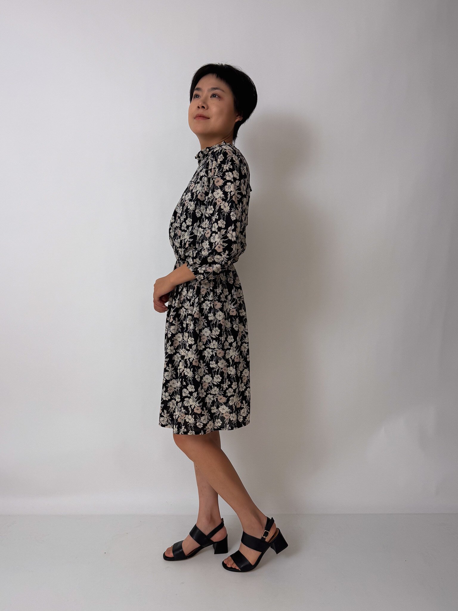 You may notice that Rayon appears to shrink when hand-washed. All she needs is a warm steamy press to return her to her original size and shape.