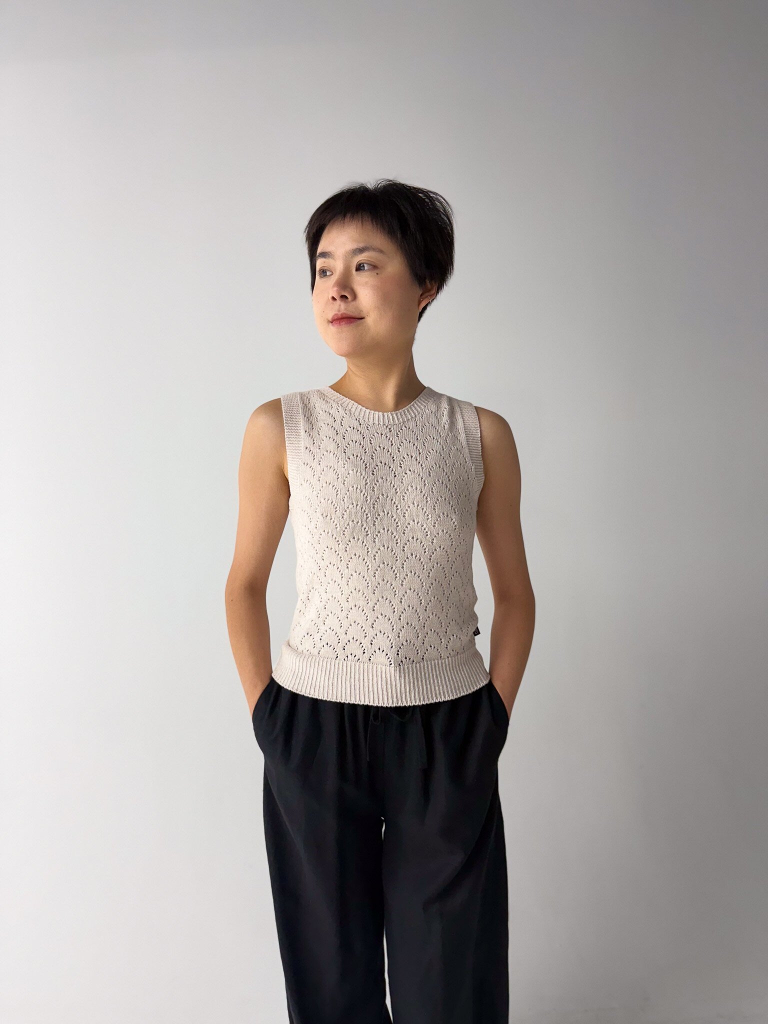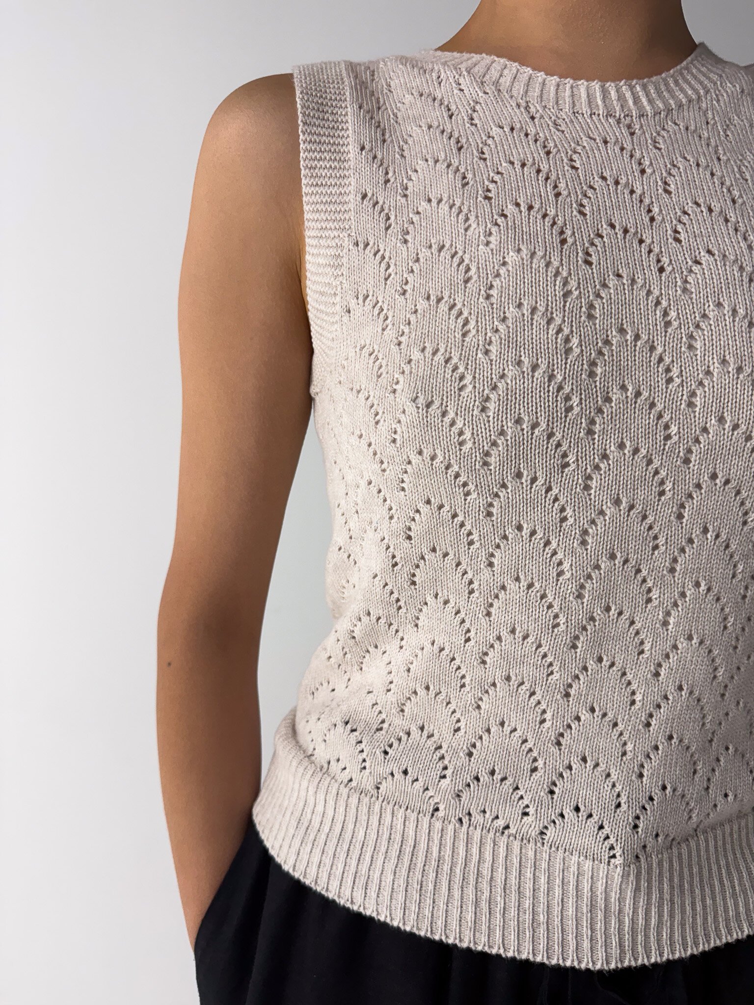 Theo is a reversible cotton vest with a lace detail.